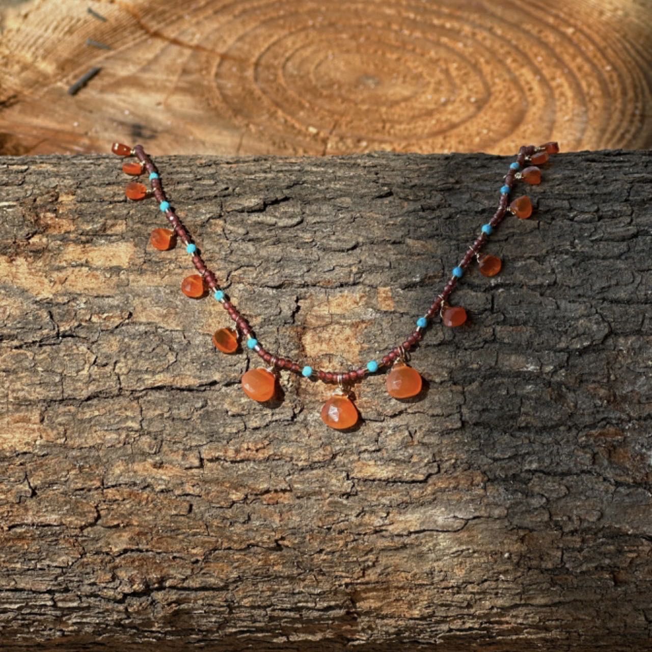 橘色玛瑙+绿松石+石榴石