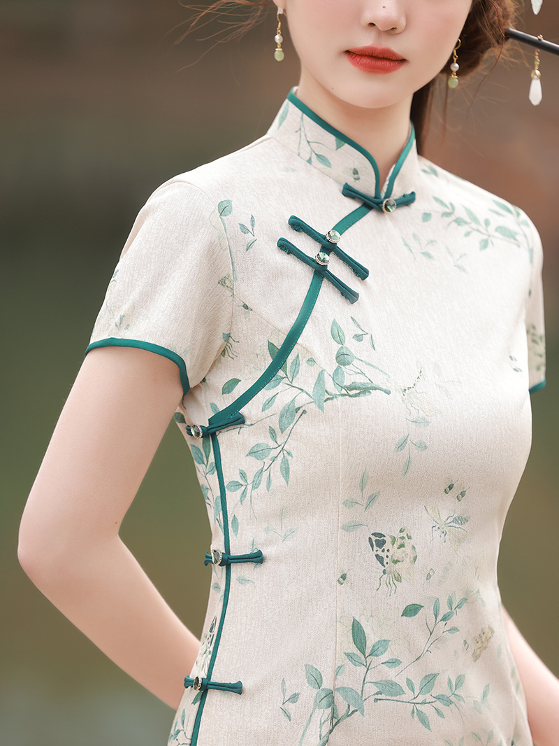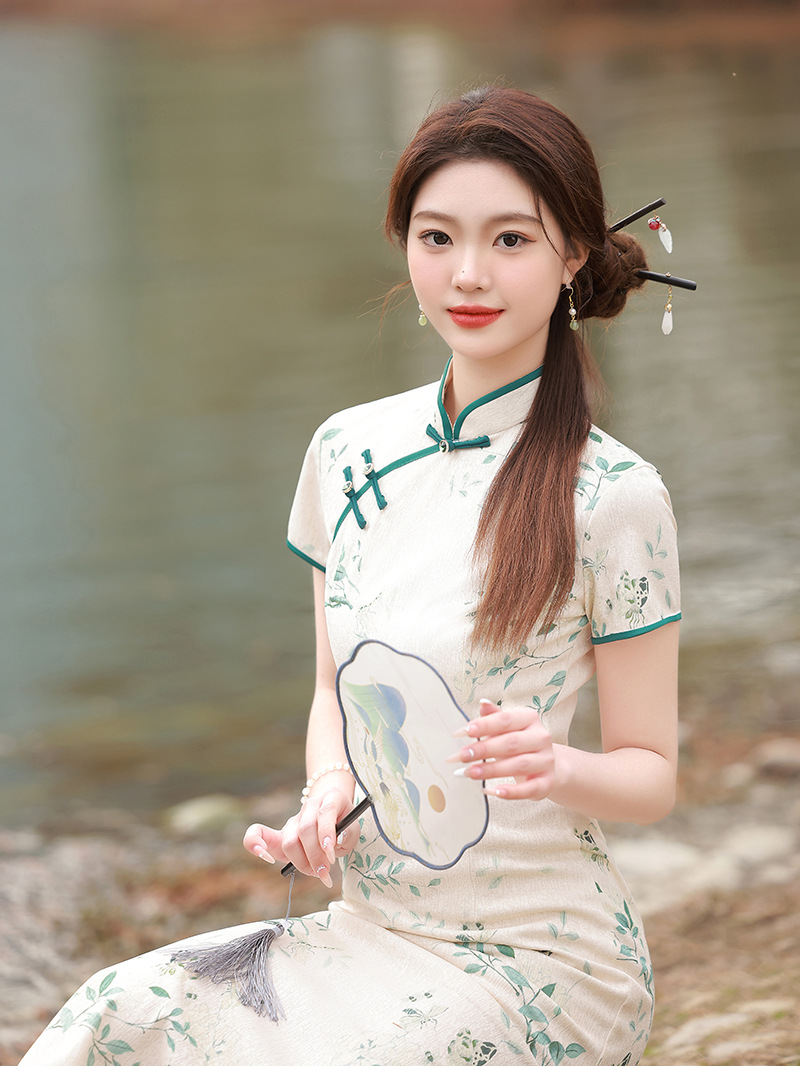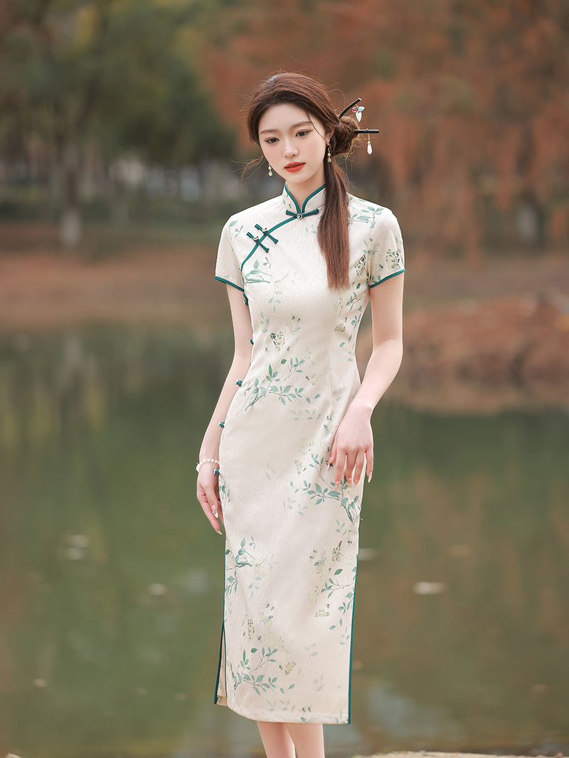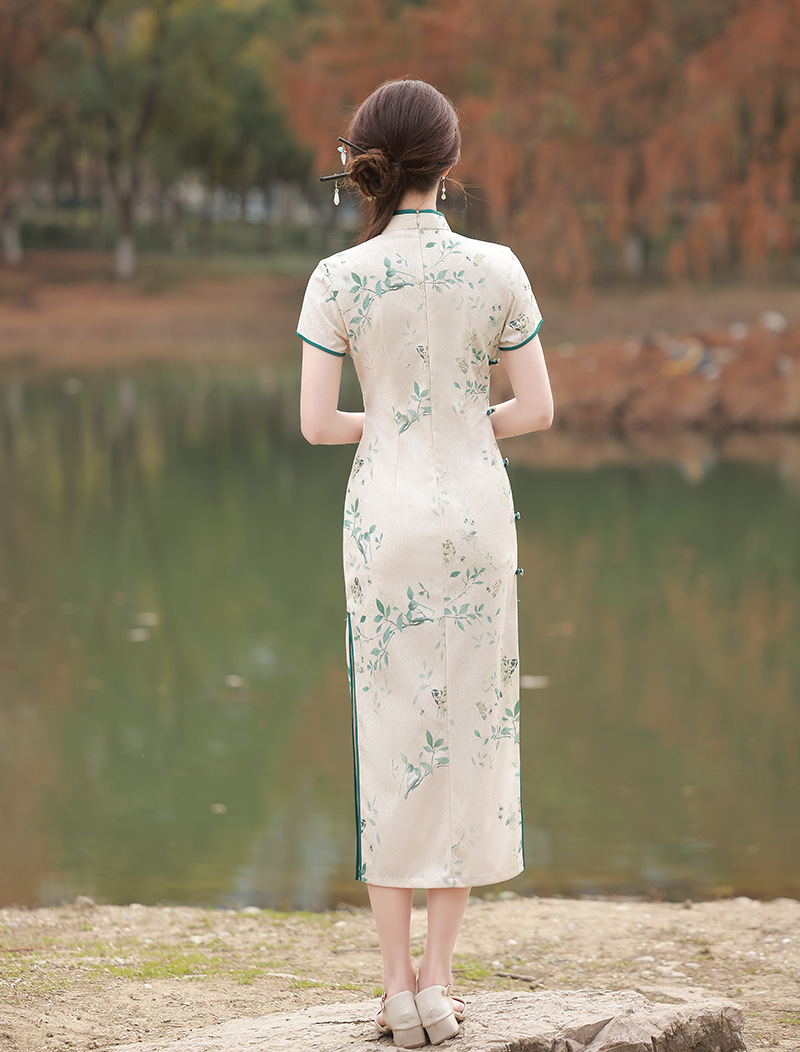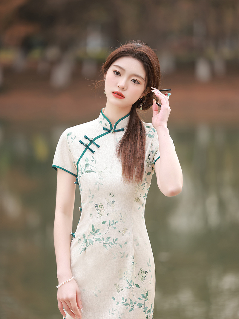ZAYS-5166春装改良蕾丝复合长旗袍日常修身气质年轻款旗袍