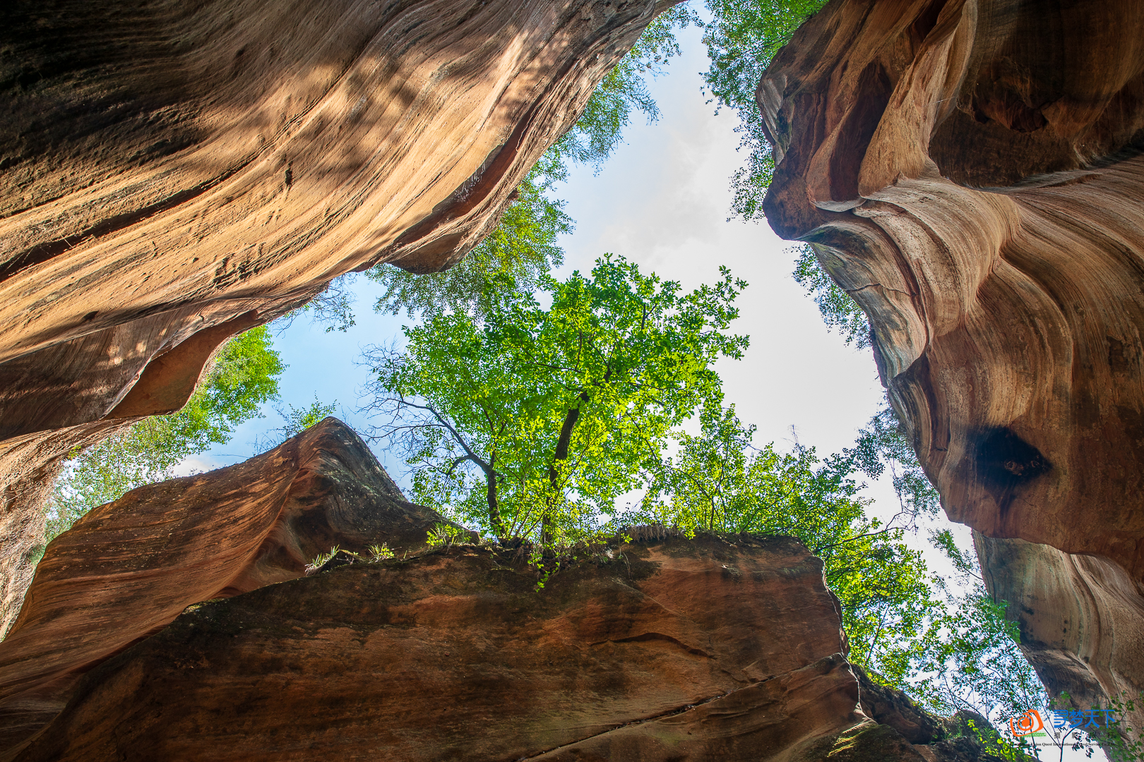 丹霞地貌奇观,红砂岩纹理独特,光影下如大地脉络,是风光摄影必拍地。