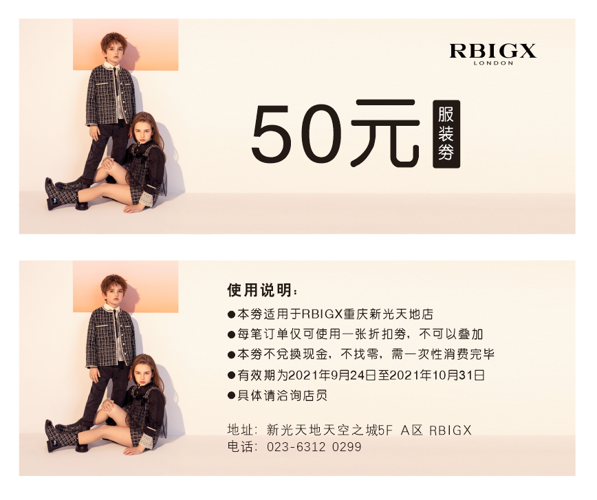1.本券适用于RBIGX重庆新光天地店;