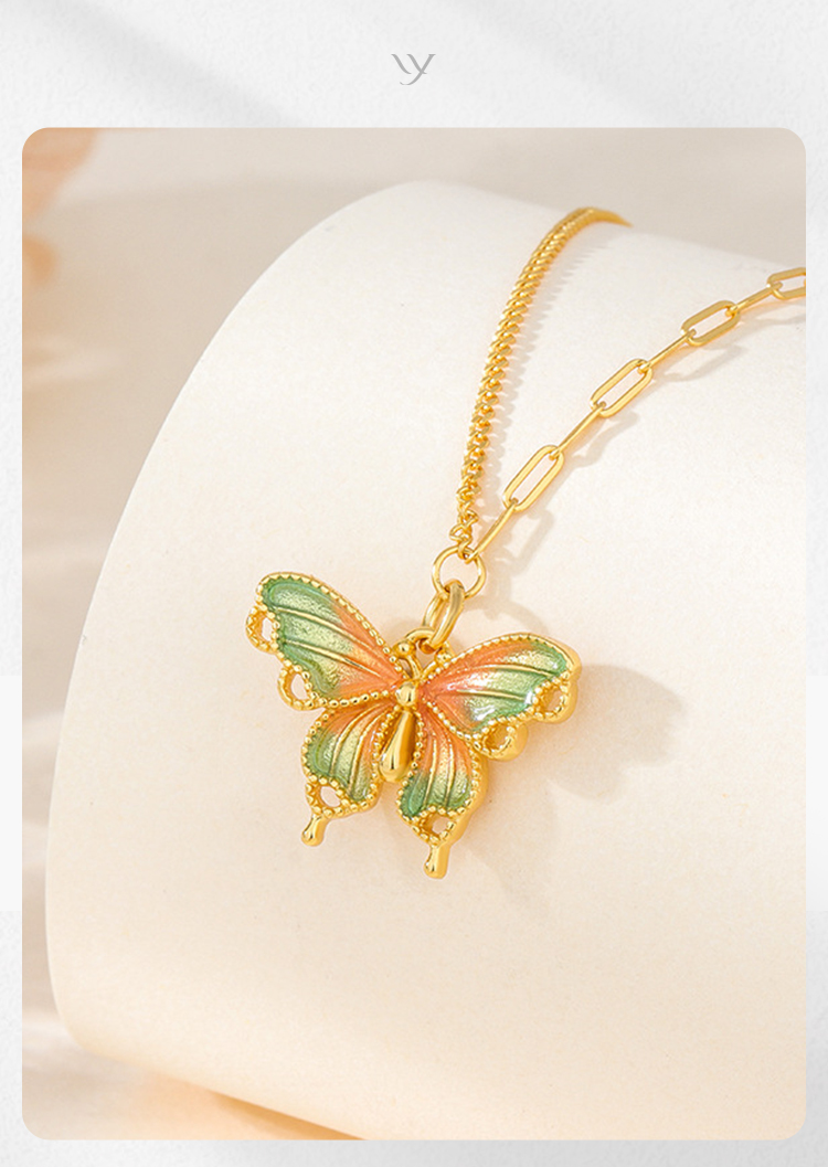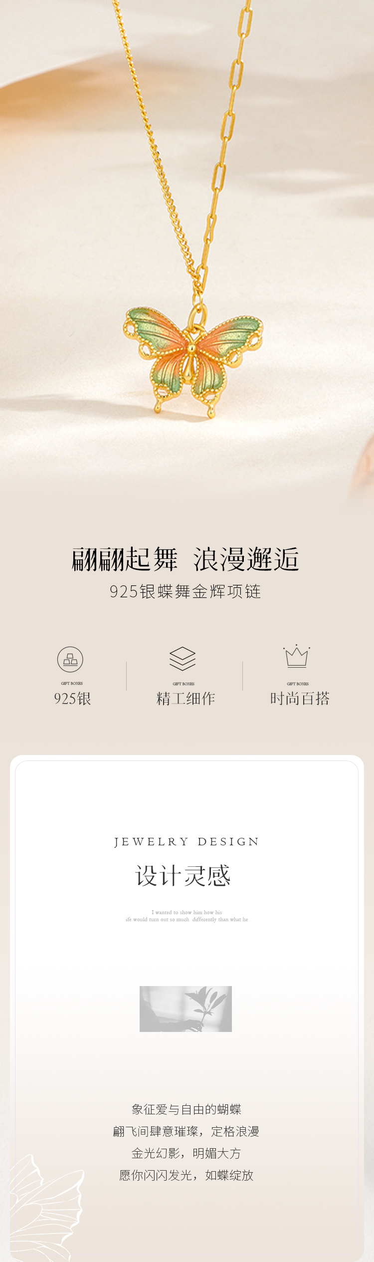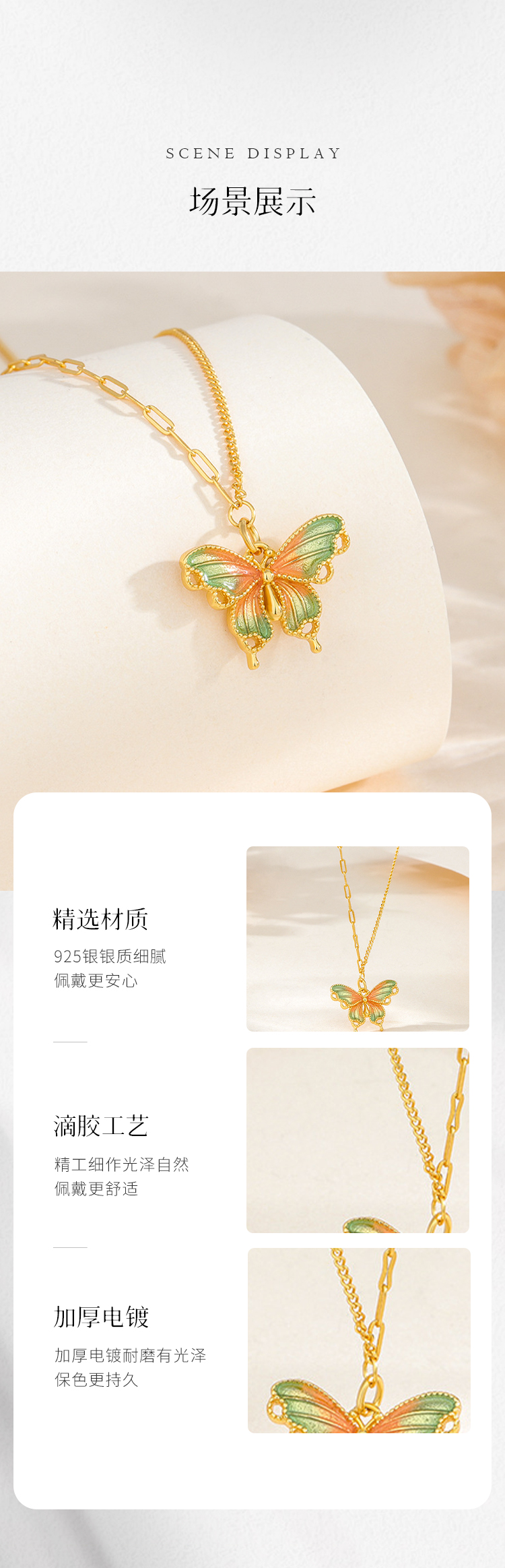 Winy925银蝶舞金辉珐琅项链配证书送女友闺蜜节日礼物