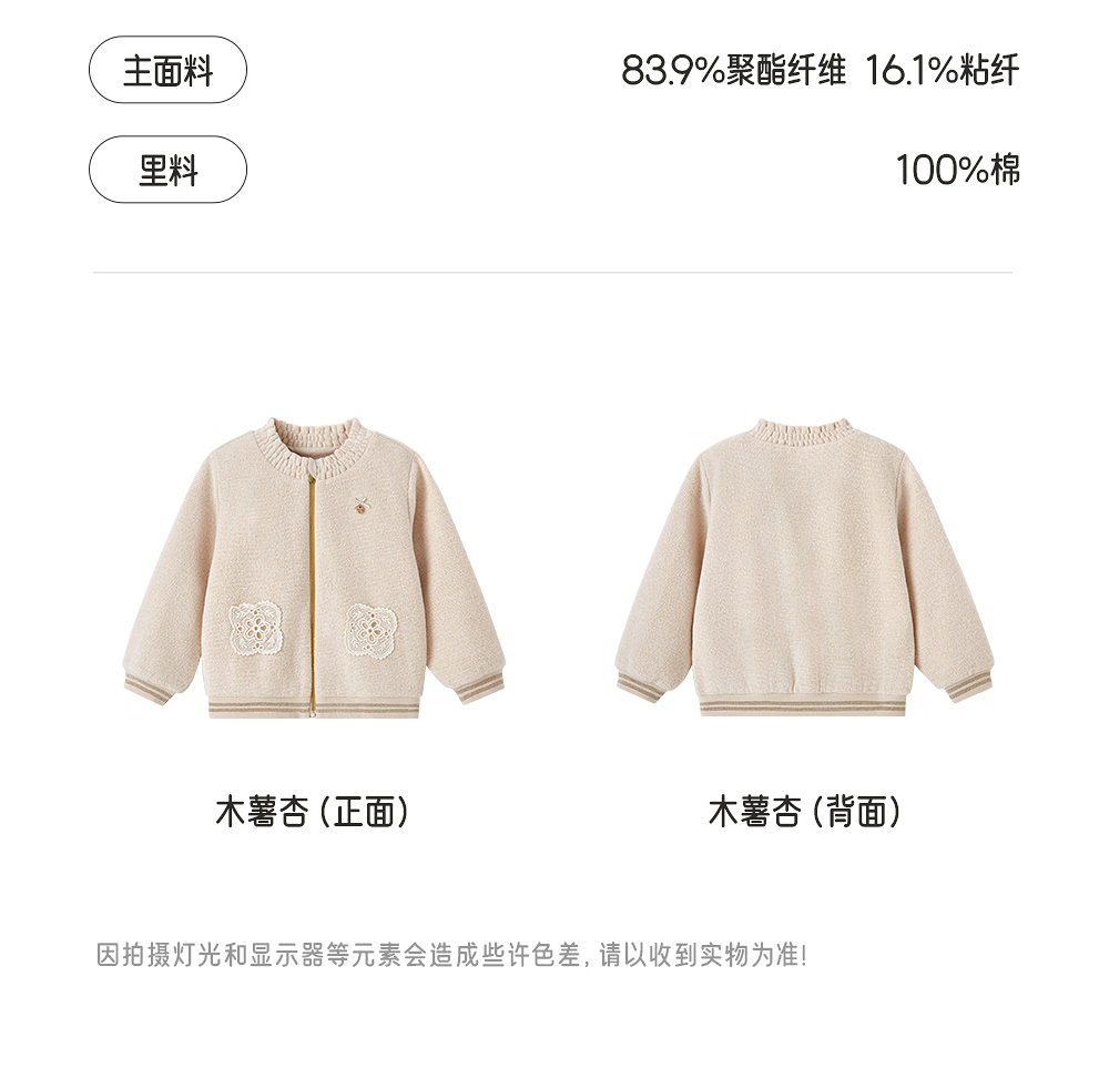 英氏儿童外套女童春秋季新款长袖加绒保暖女宝外套中大童夹克外套