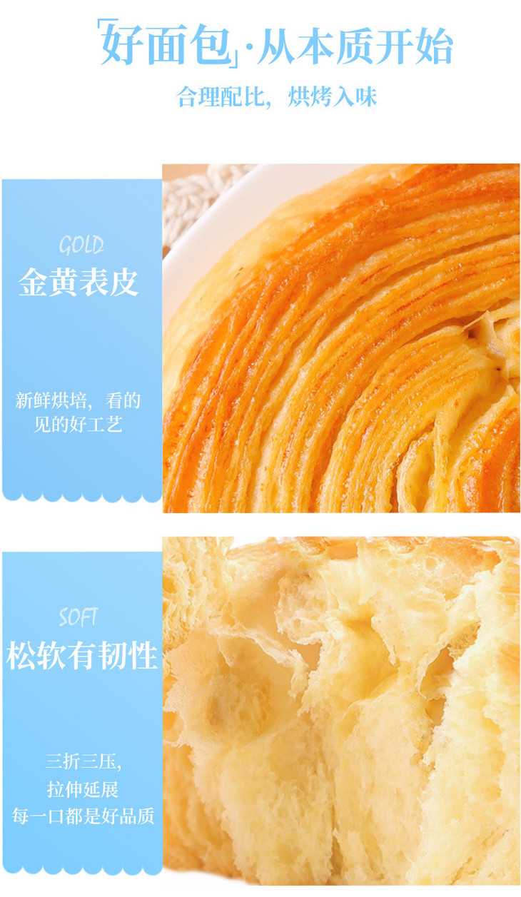 【健康早餐】奶香手撕面包 层层松软 奶香味面包 早餐面包 健康美味