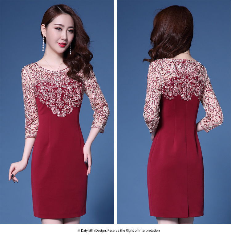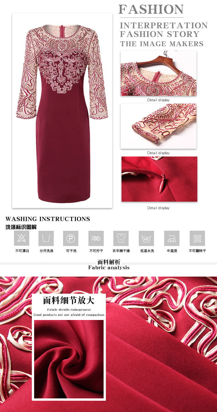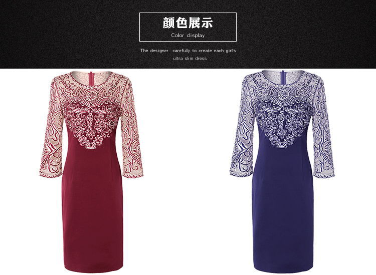 SL-Q4106新款春秋盘花重工刺绣花修身气质优雅包臀连衣裙