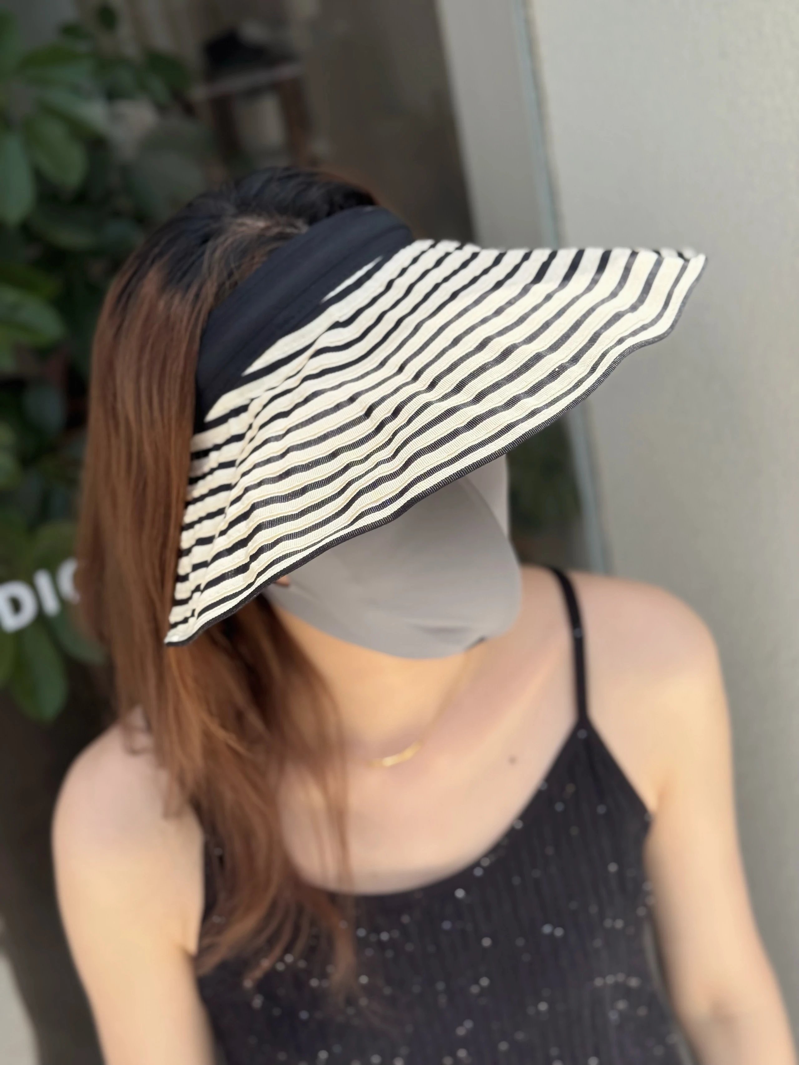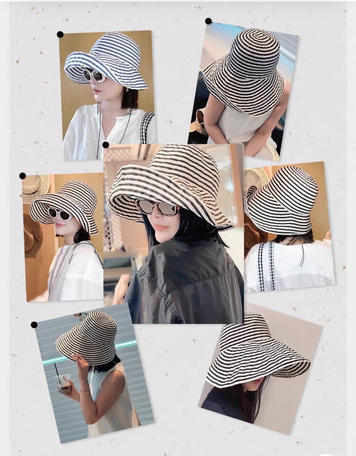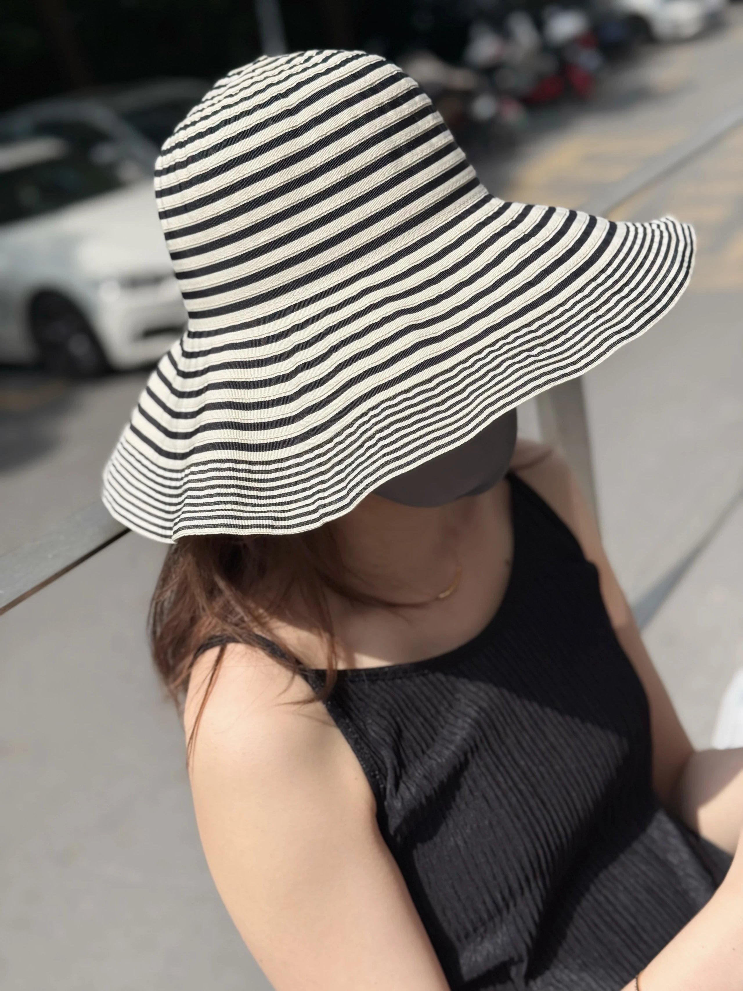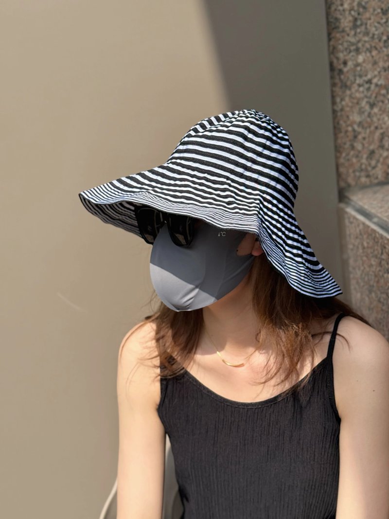 👉这次还带来了两款值与防晒并存的条纹防晒帽