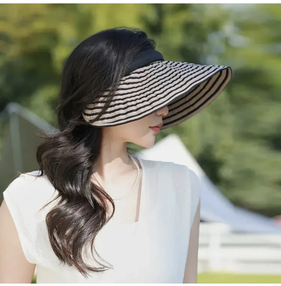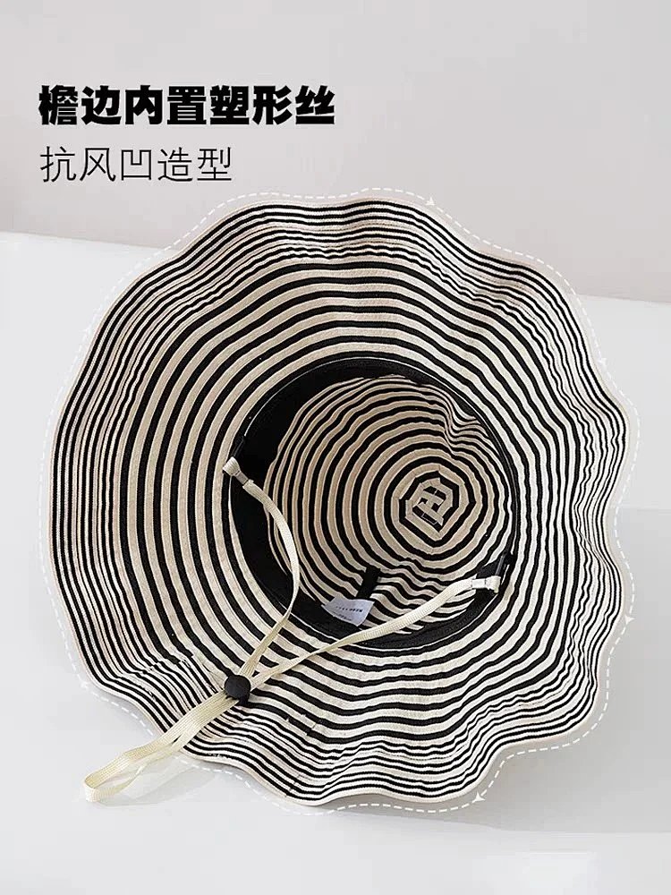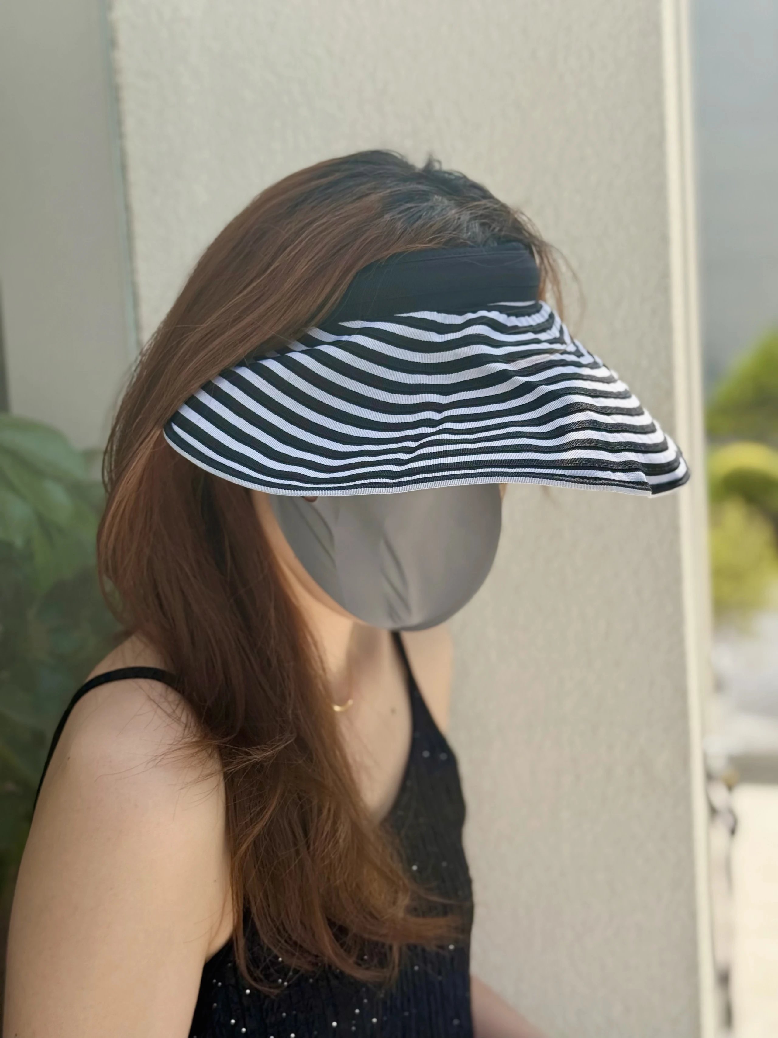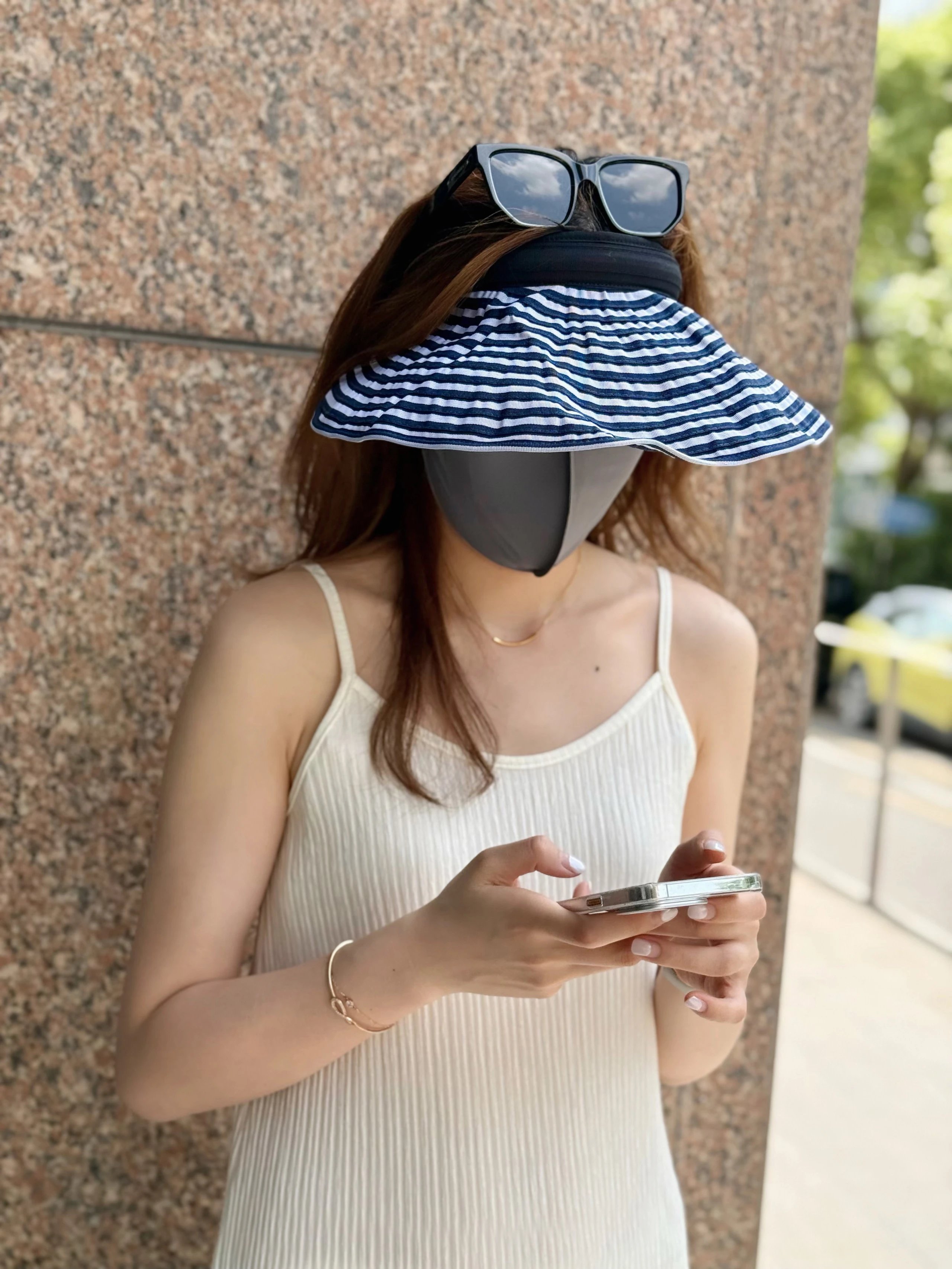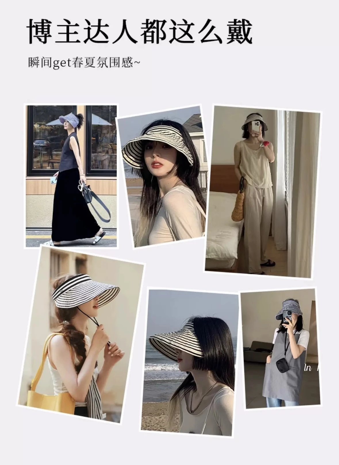 👉这次还带来了两款值与防晒并存的条纹防晒帽