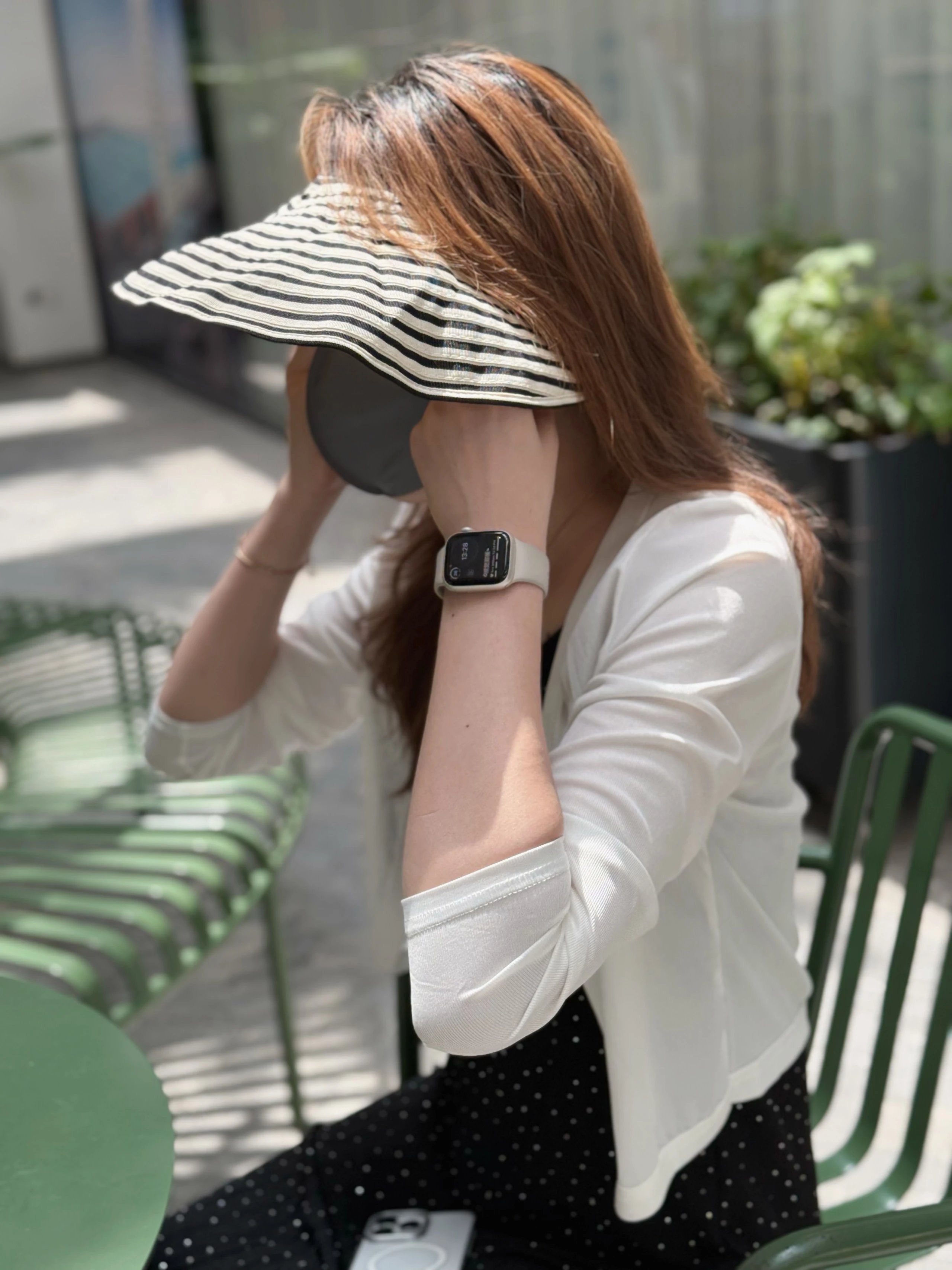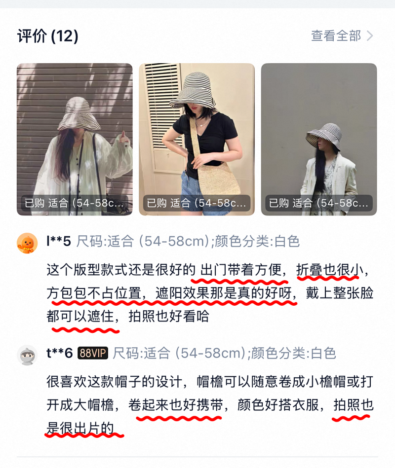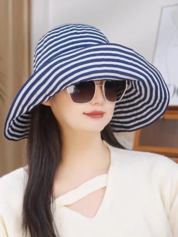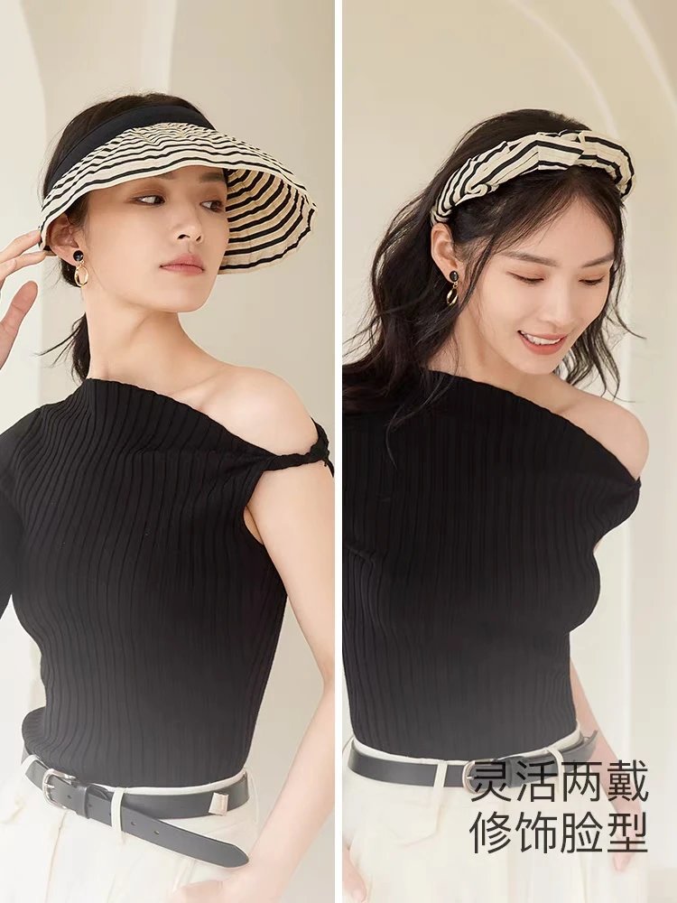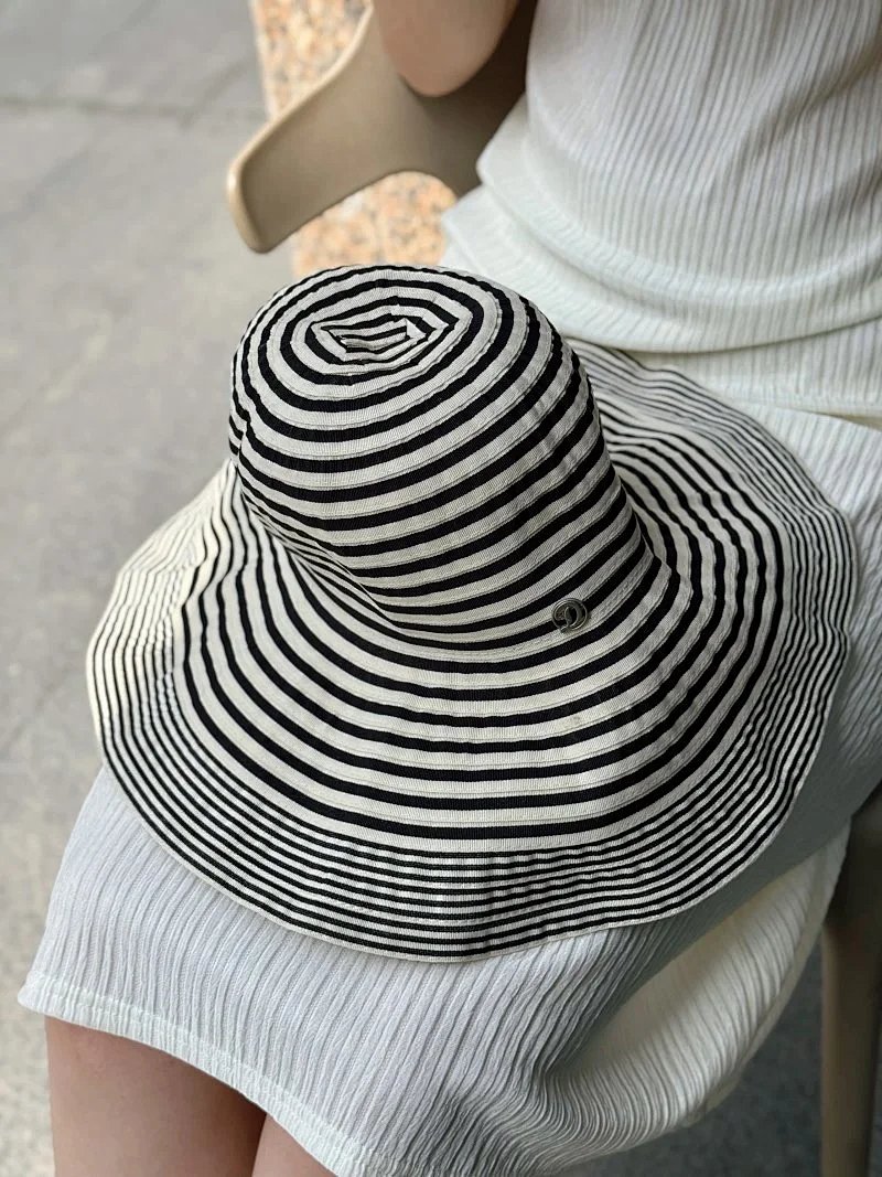 👉这次还带来了两款值与防晒并存的条纹防晒帽