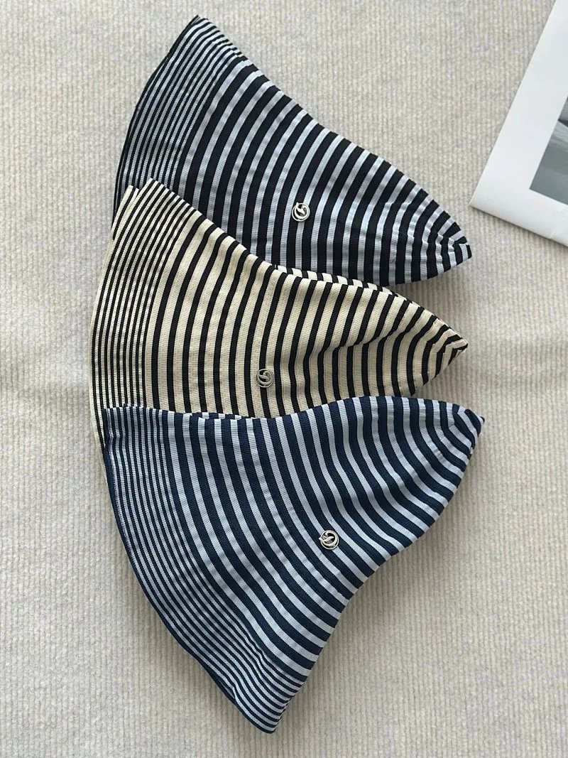 ✔️第二款:可折叠大帽檐条纹渔夫帽