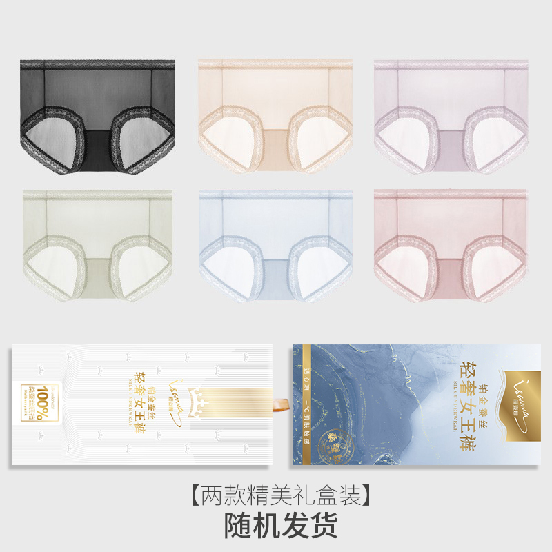 【初秋福利,樱姿娜803蚕丝内裤组合】100%桑蚕丝底裆,丝滑锦纶裤身,温柔蕾丝款,6条礼盒装