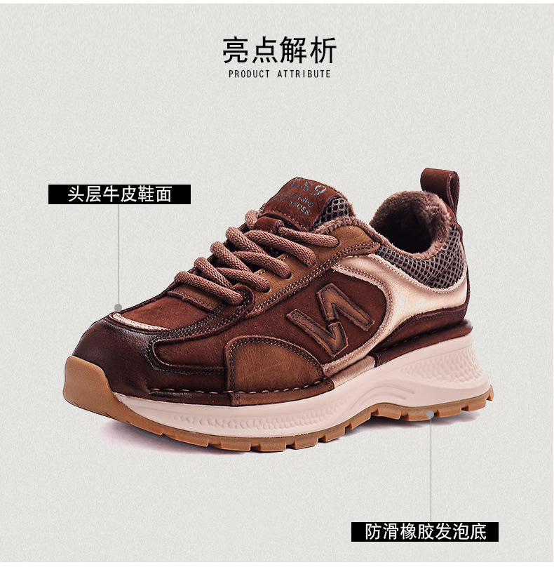 YR 2920复古拼色休闲鞋阿甘鞋加绒毛毛鞋厚底运动鞋 商品图0