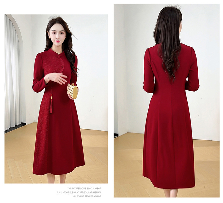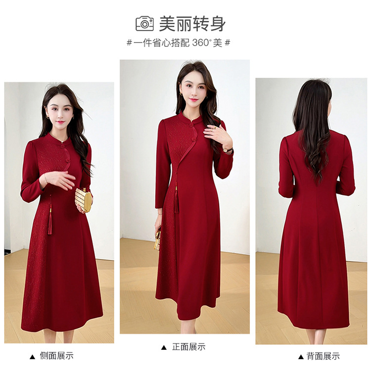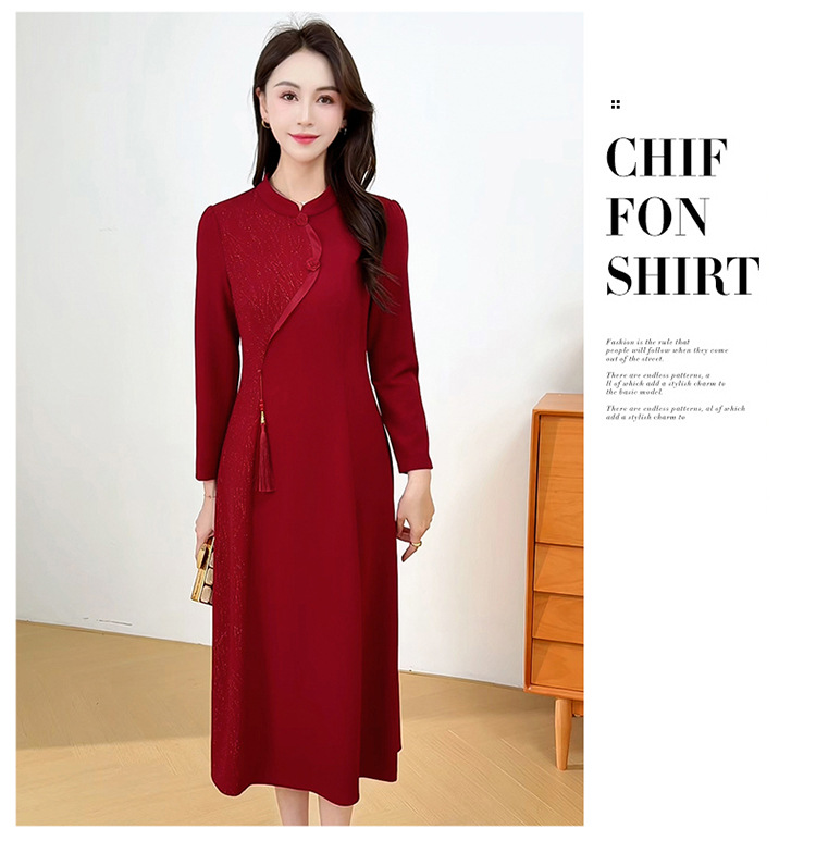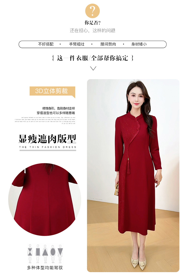 QYM SDB08-Y连衣裙气质优雅女装旗袍裙复古 商品图4