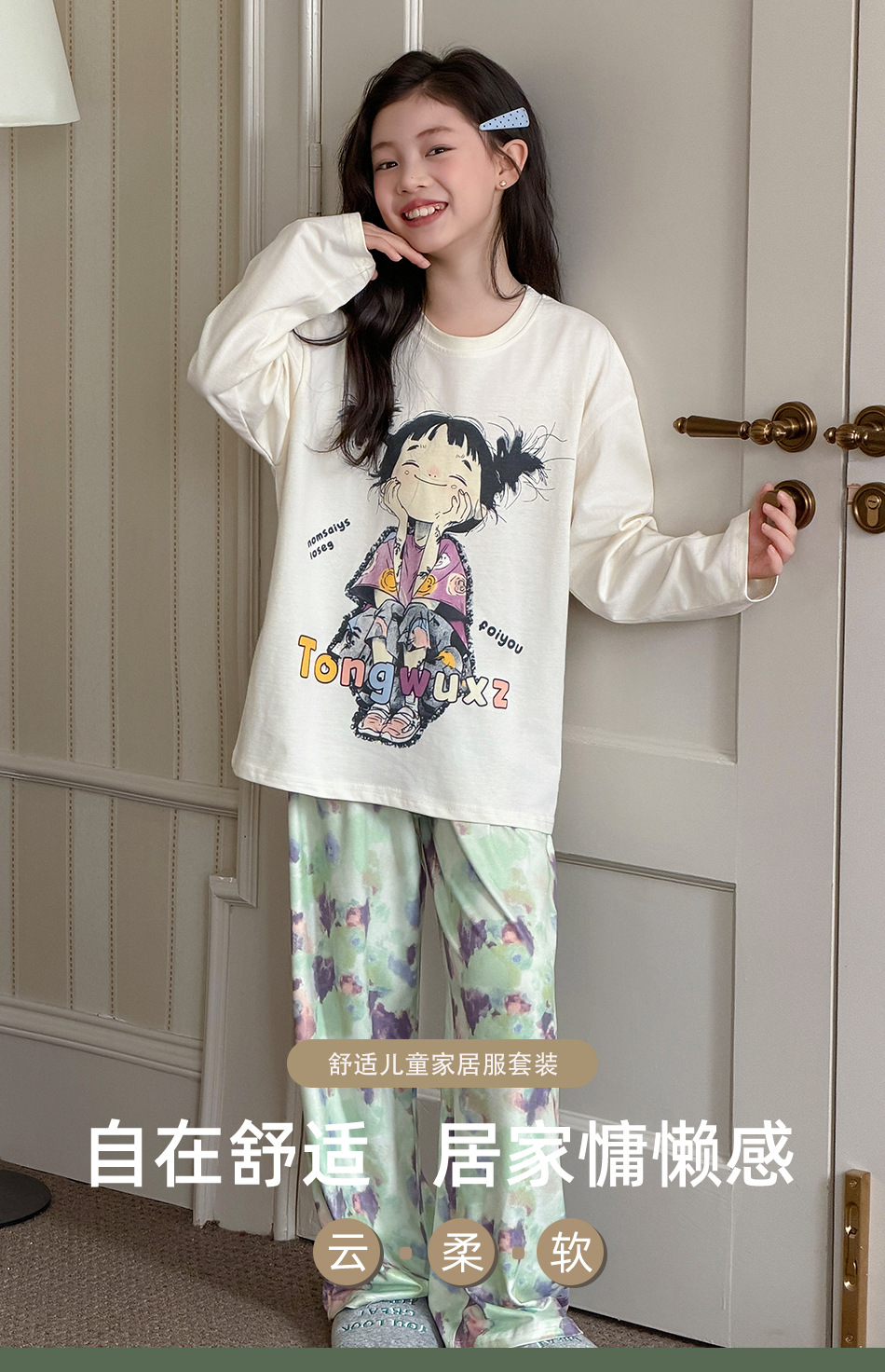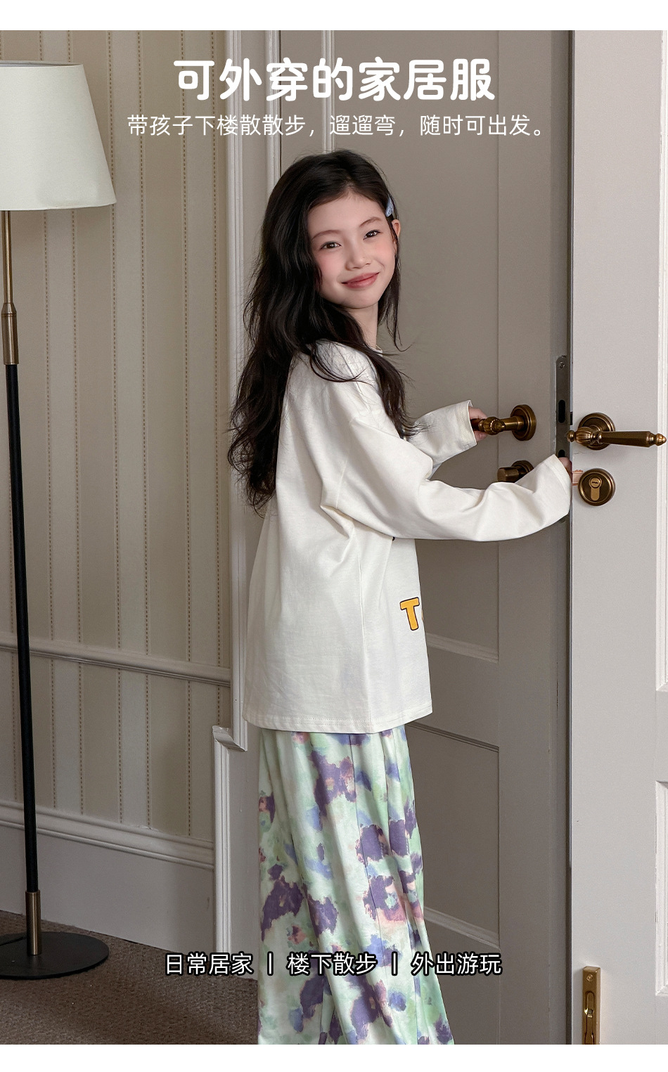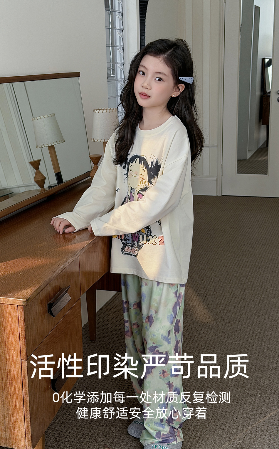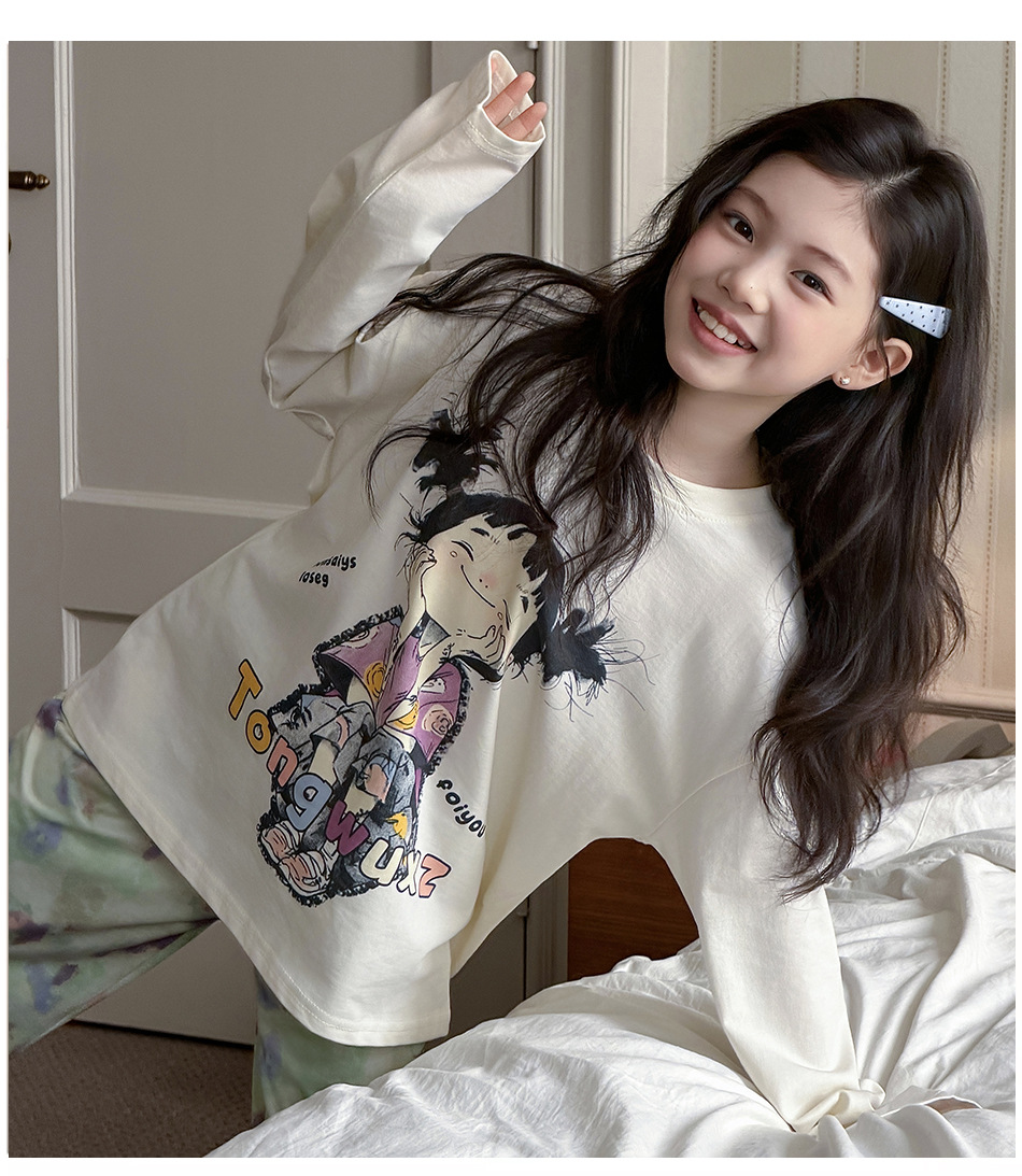 【自在舒适❗️居家慵懒感】女童春款家居服中大童卡通长袖T恤休闲宽松睡衣女孩甜美公主套装。jd