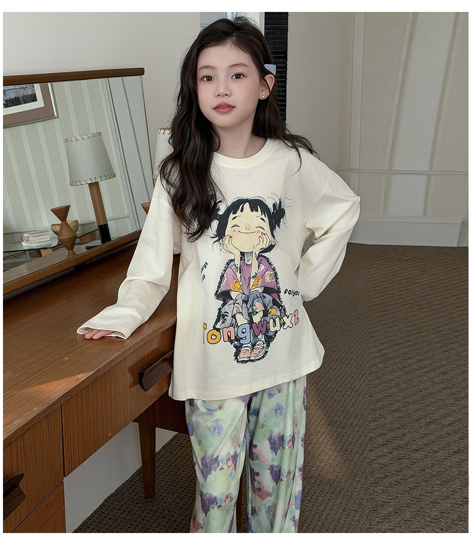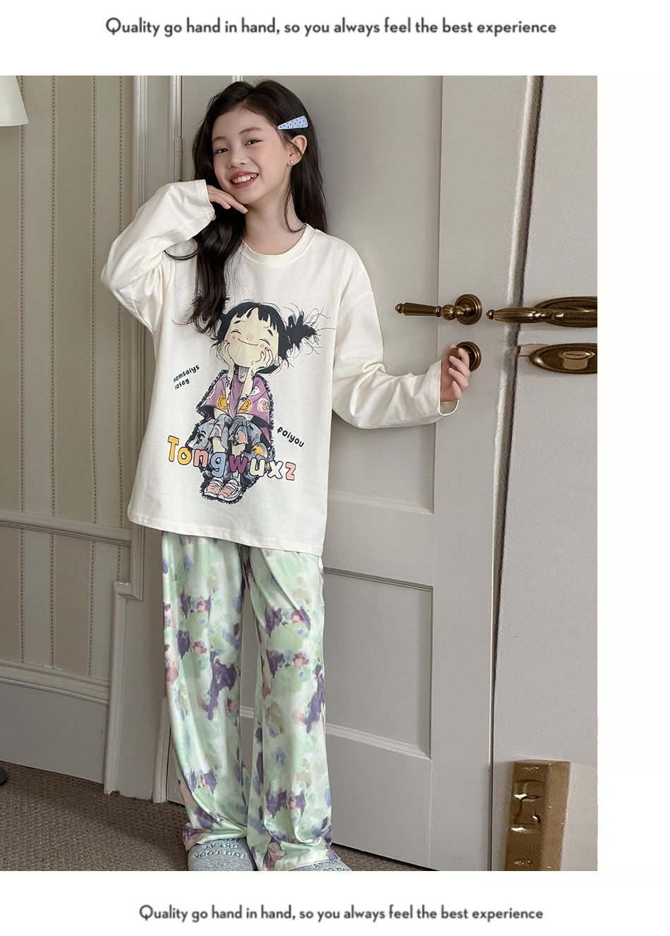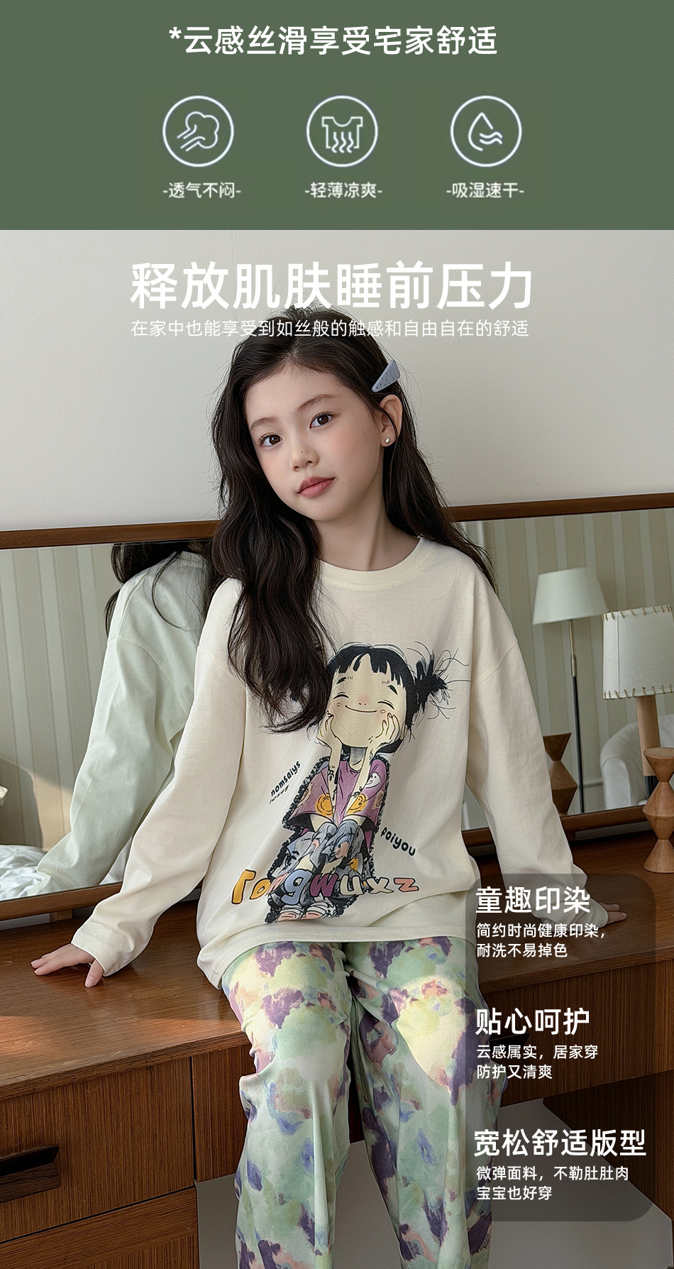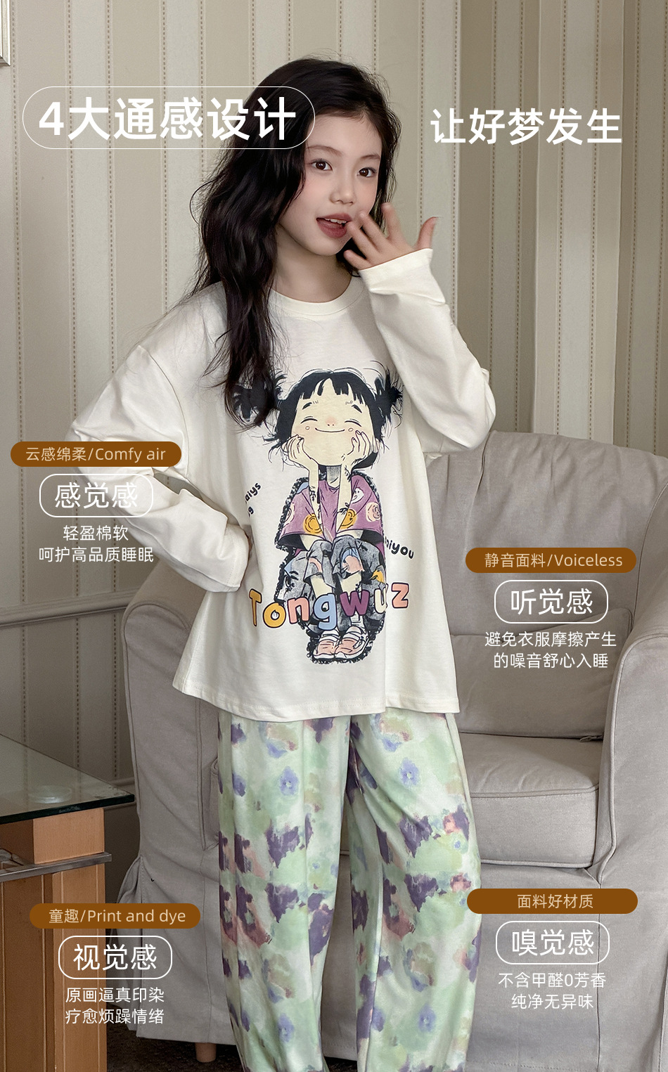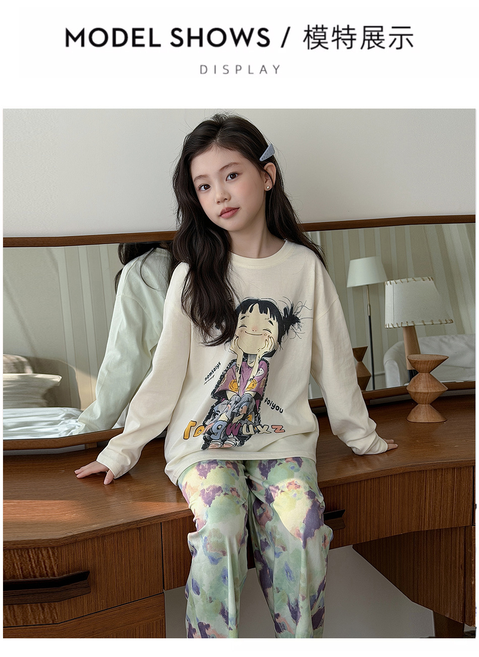 【自在舒适❗️居家慵懒感】女童春款家居服中大童卡通长袖T恤休闲宽松睡衣女孩甜美公主套装。jd