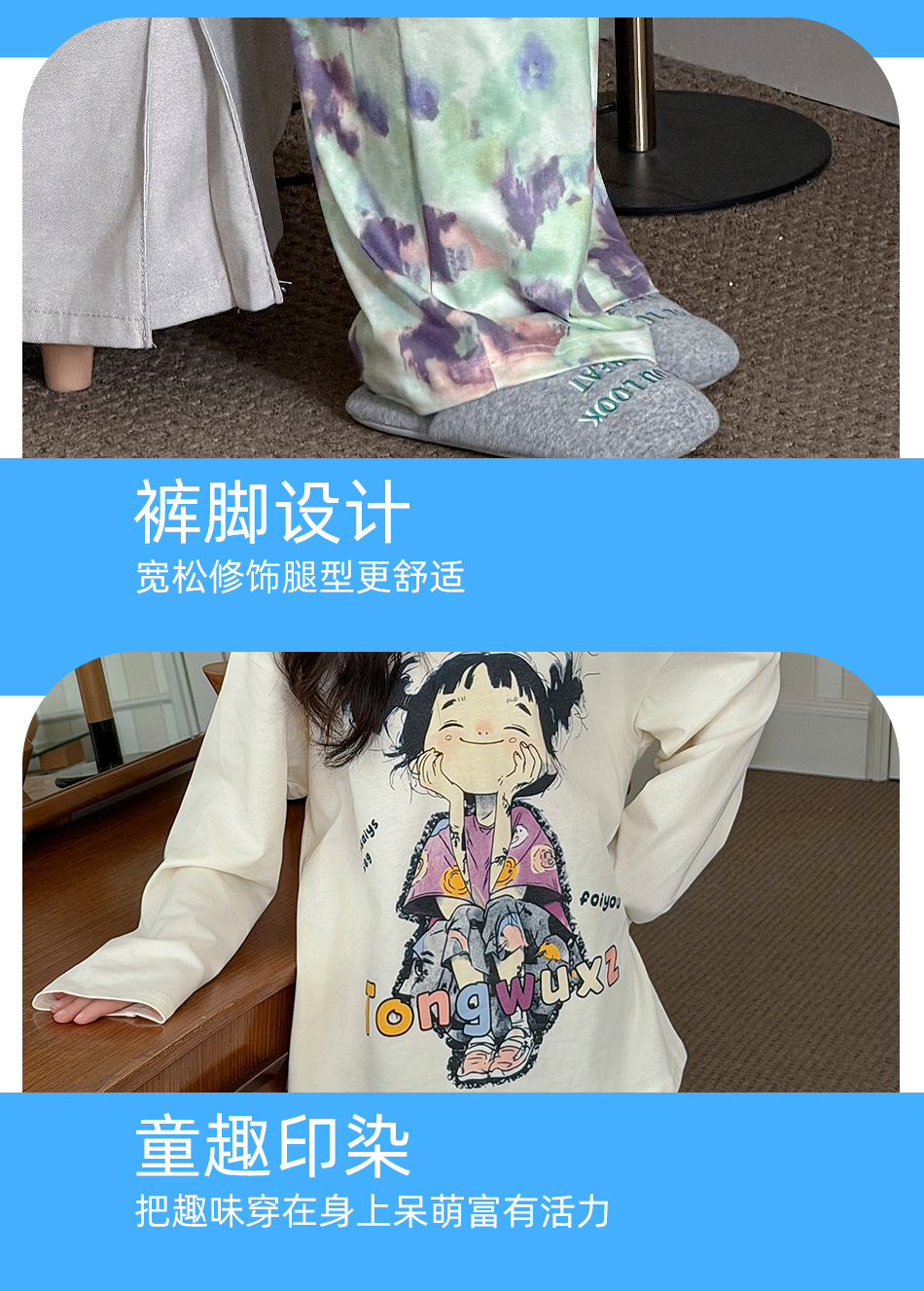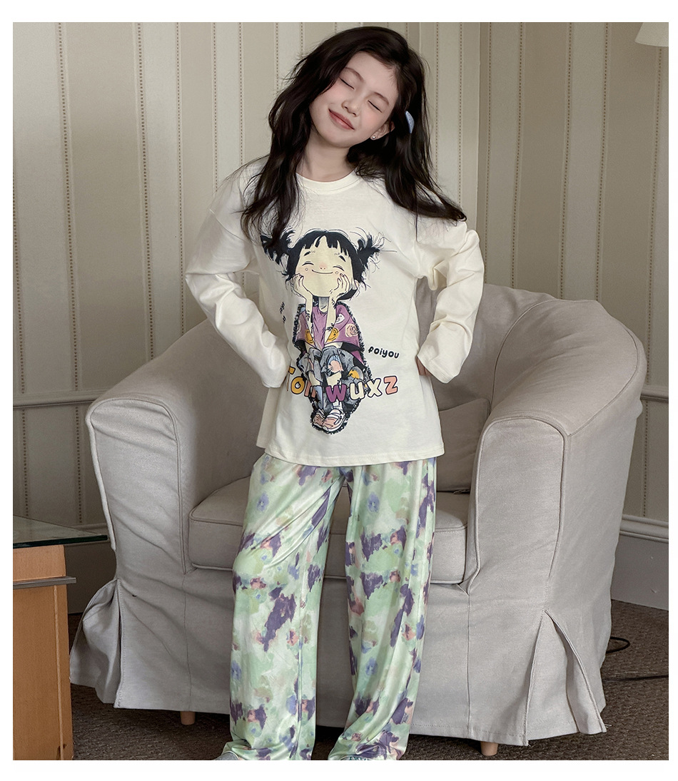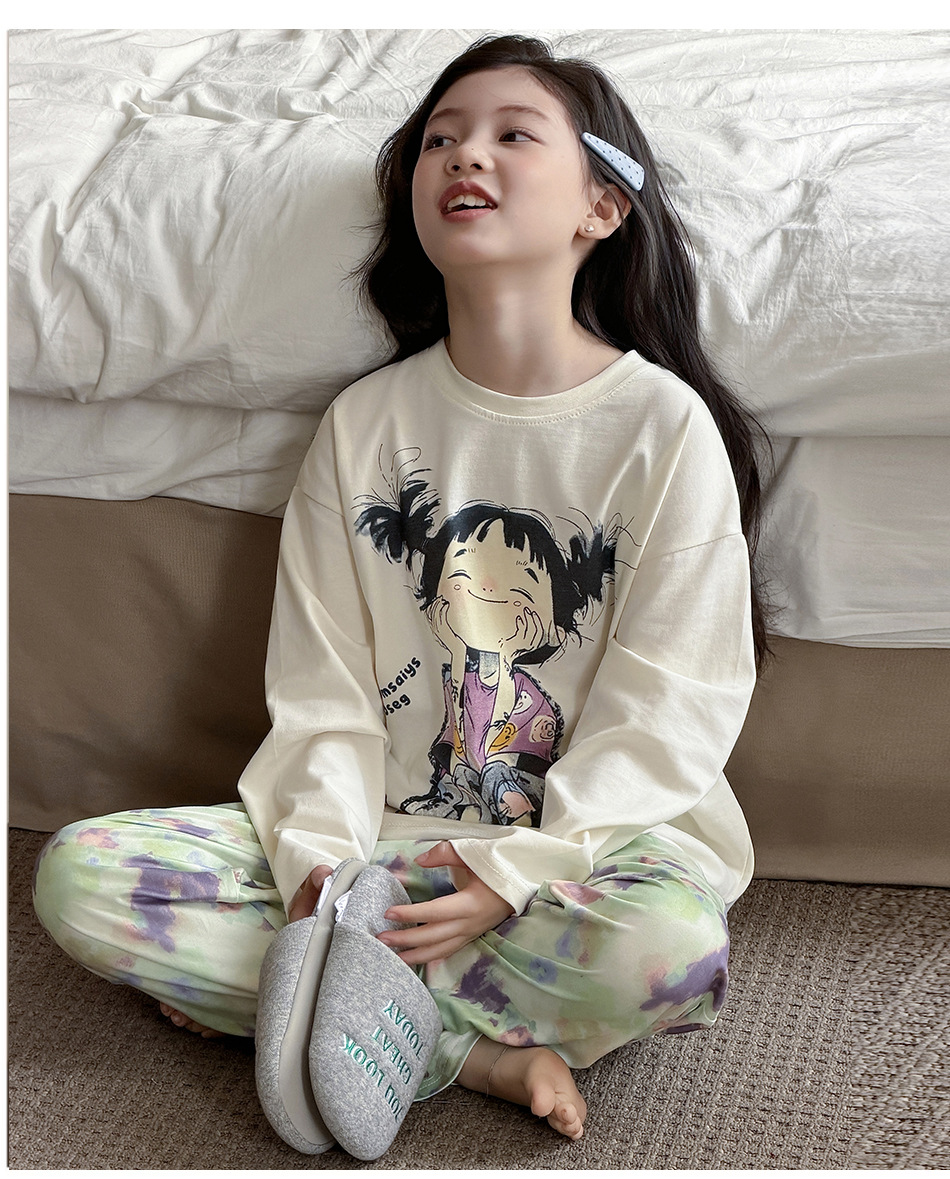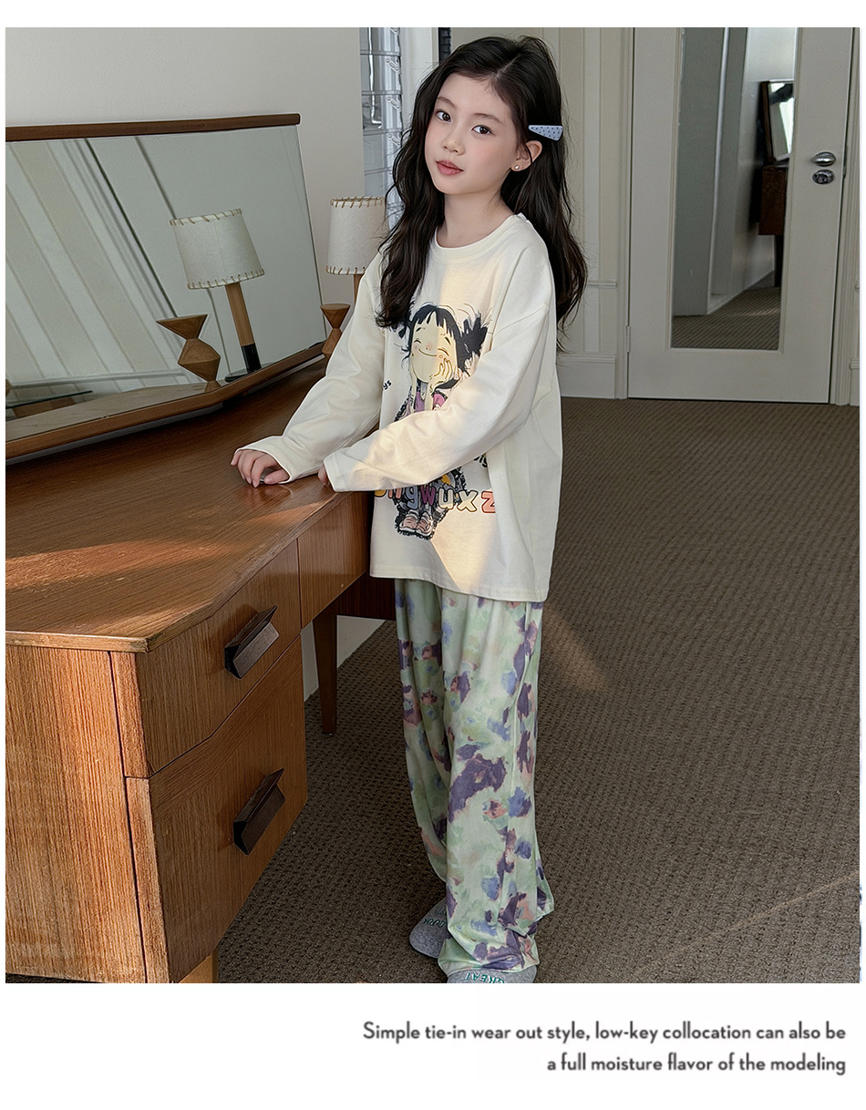 【自在舒适❗️居家慵懒感】女童春款家居服中大童卡通长袖T恤休闲宽松睡衣女孩甜美公主套装。jd
