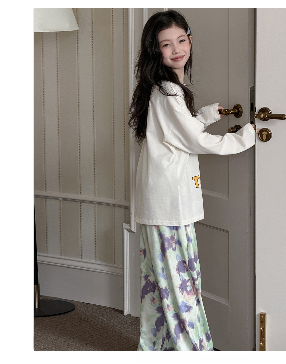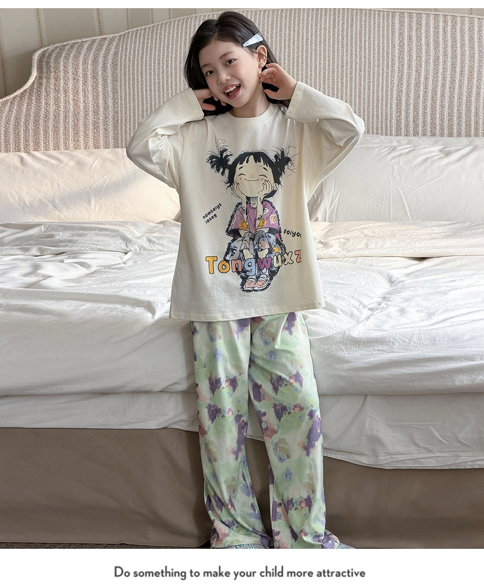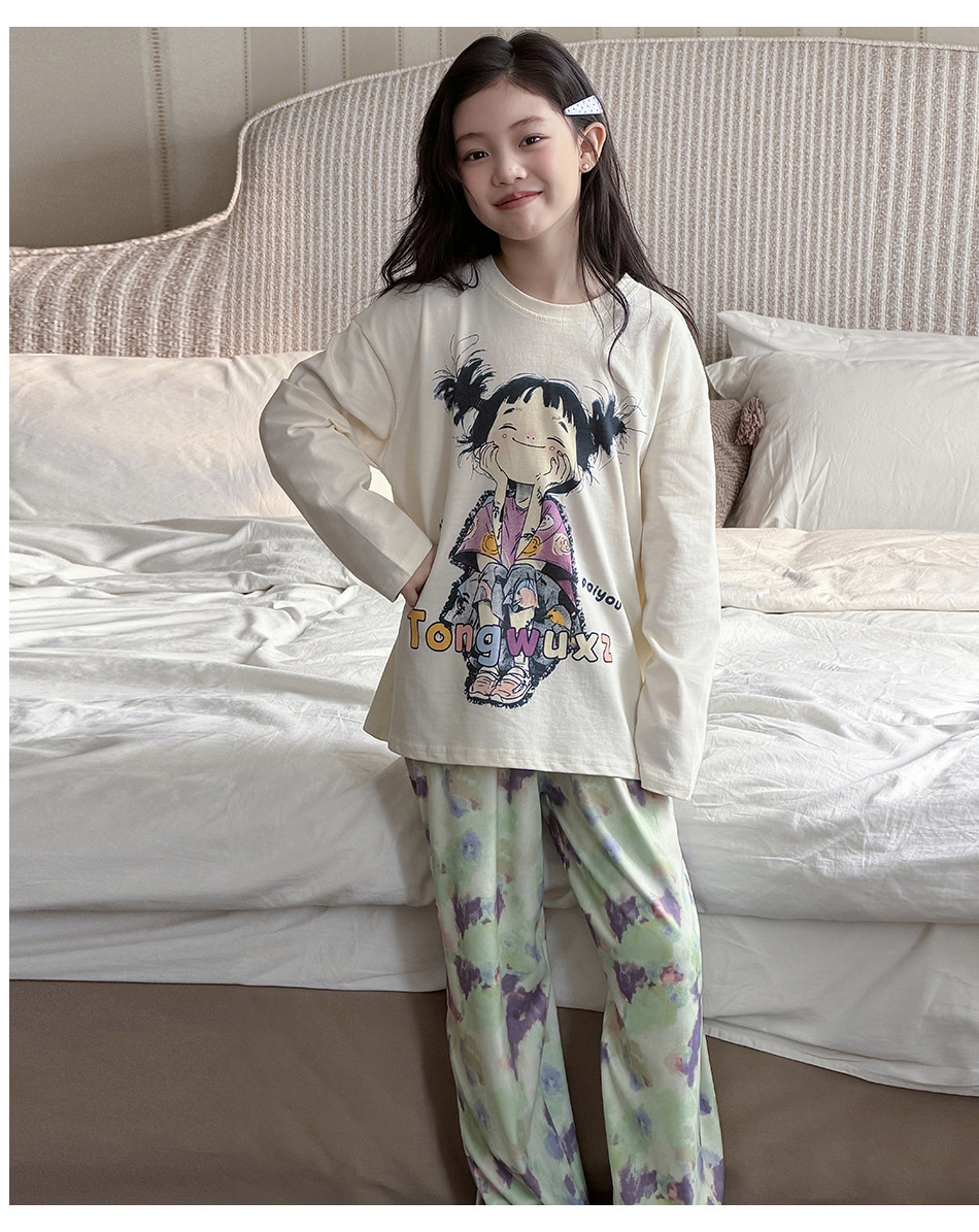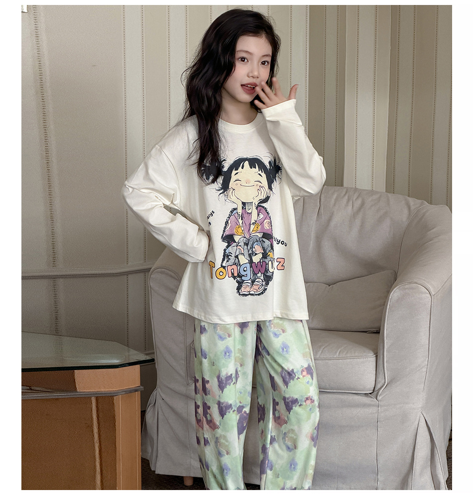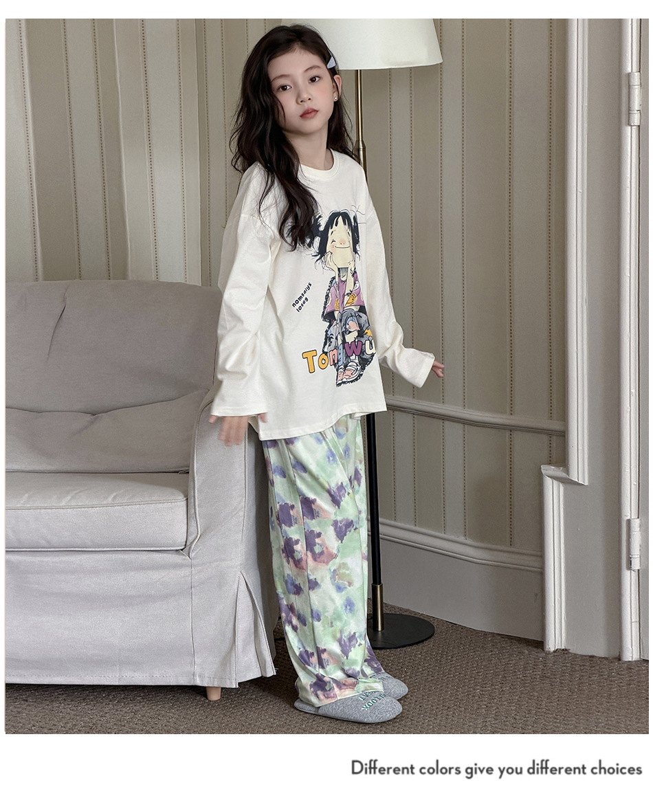 【自在舒适❗️居家慵懒感】女童春款家居服中大童卡通长袖T恤休闲宽松睡衣女孩甜美公主套装。jd