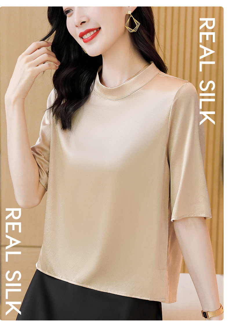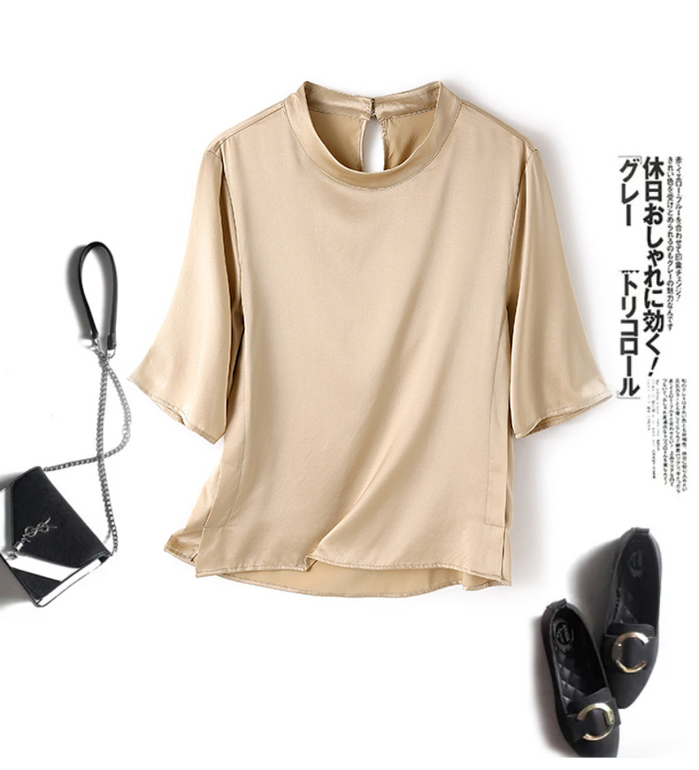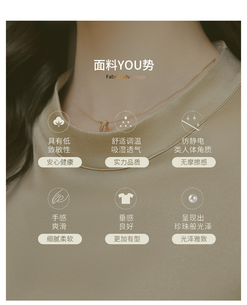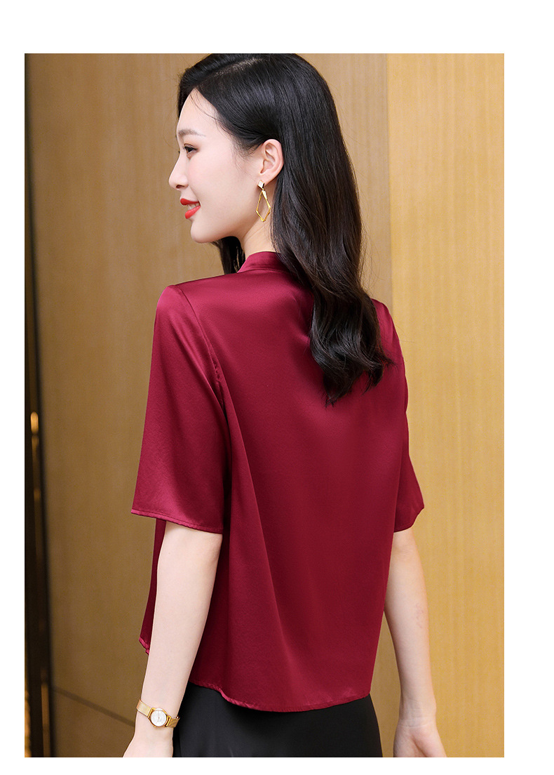 上海旗袍厂ASE-6620纯色系带职场单排扣真丝衬衫