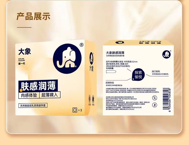 【大象】肤感润薄3只+大象激润款2只安全避孕套组合5只装