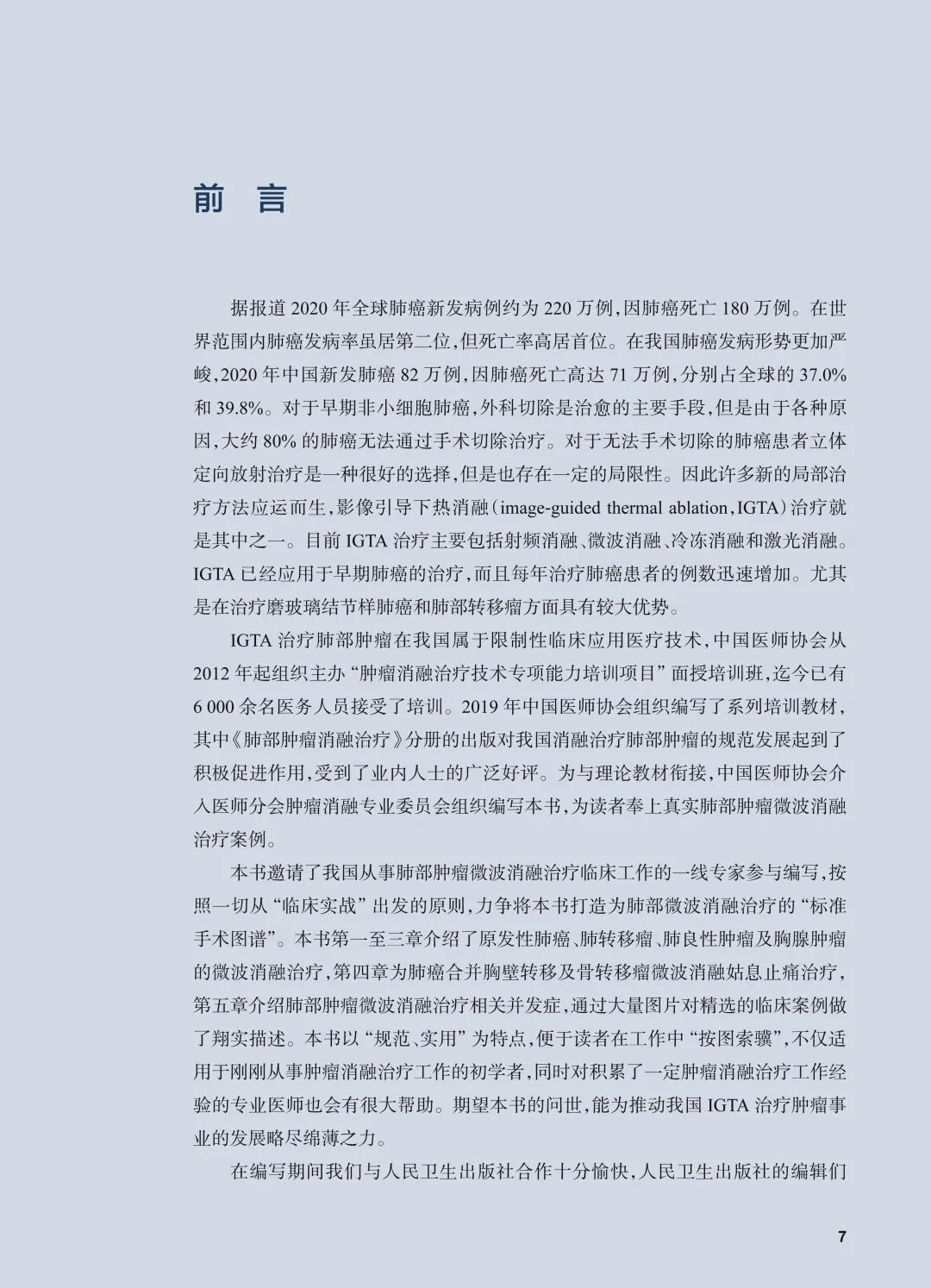 1.本书用近300例真实临床病例,详述原发性肺癌、肺转移瘤、肺良性肿瘤及胸腺肿瘤、肺癌合并胸壁转移及骨转移、肺部肿瘤微波消融治疗相关并发症的消融治疗,全面覆盖肺部肿瘤微波消融治疗的临床应用。