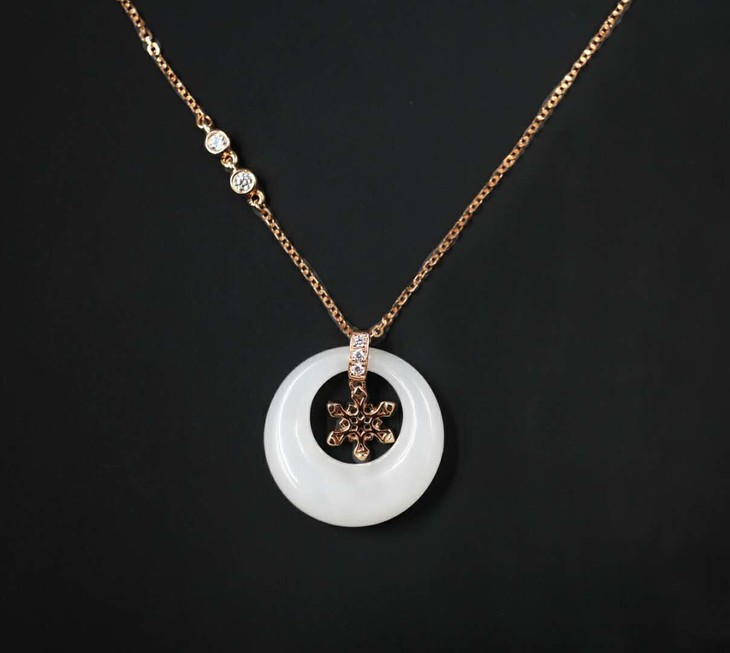 18k玫瑰金和田玉(白玉)吊坠-雪舞