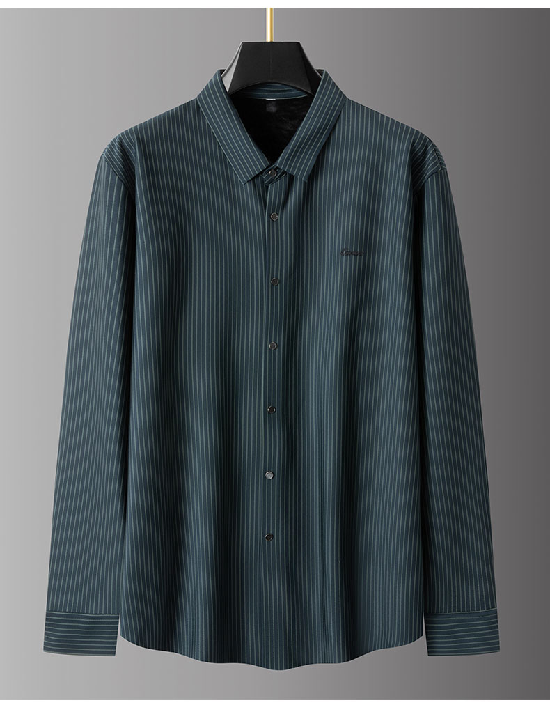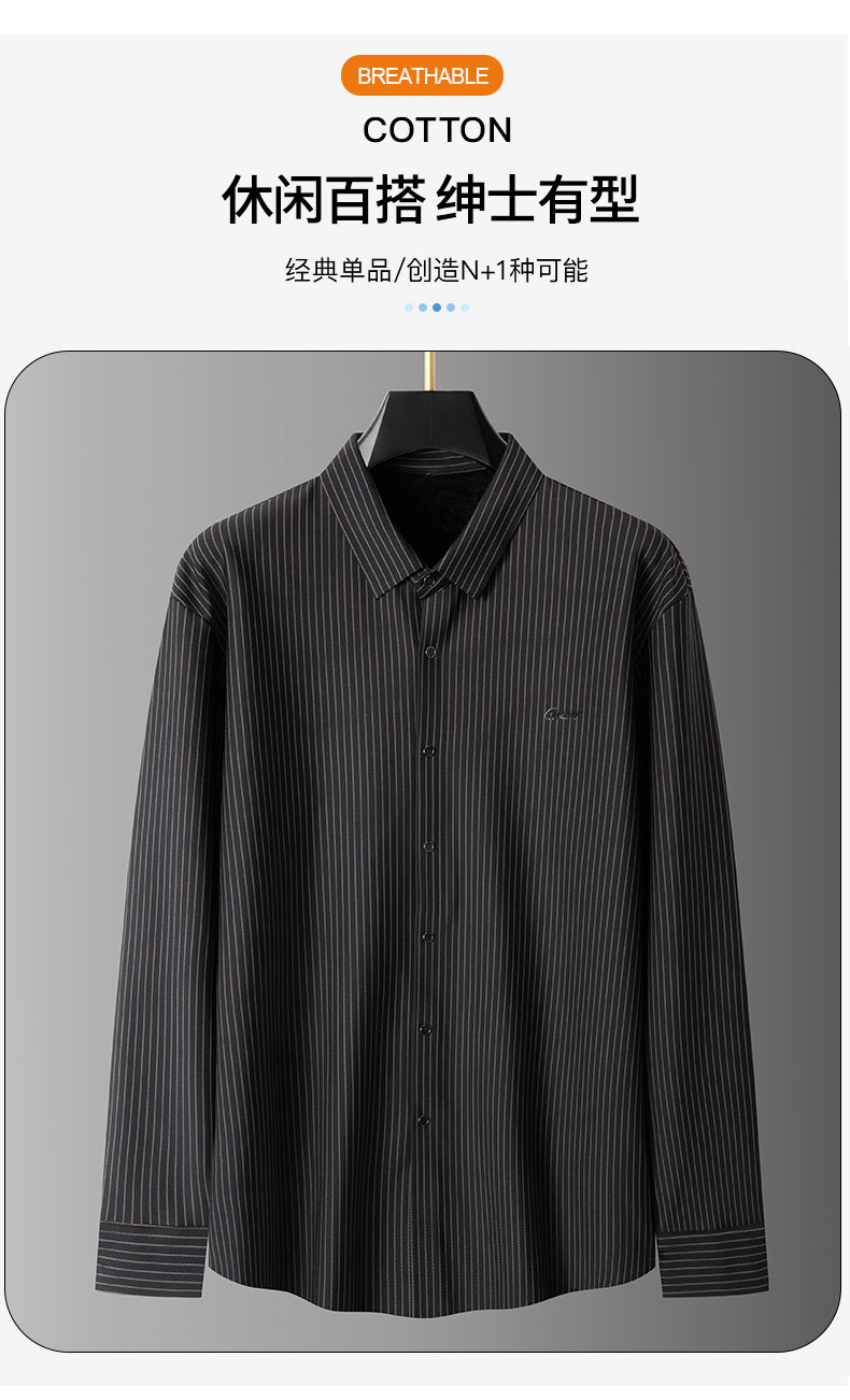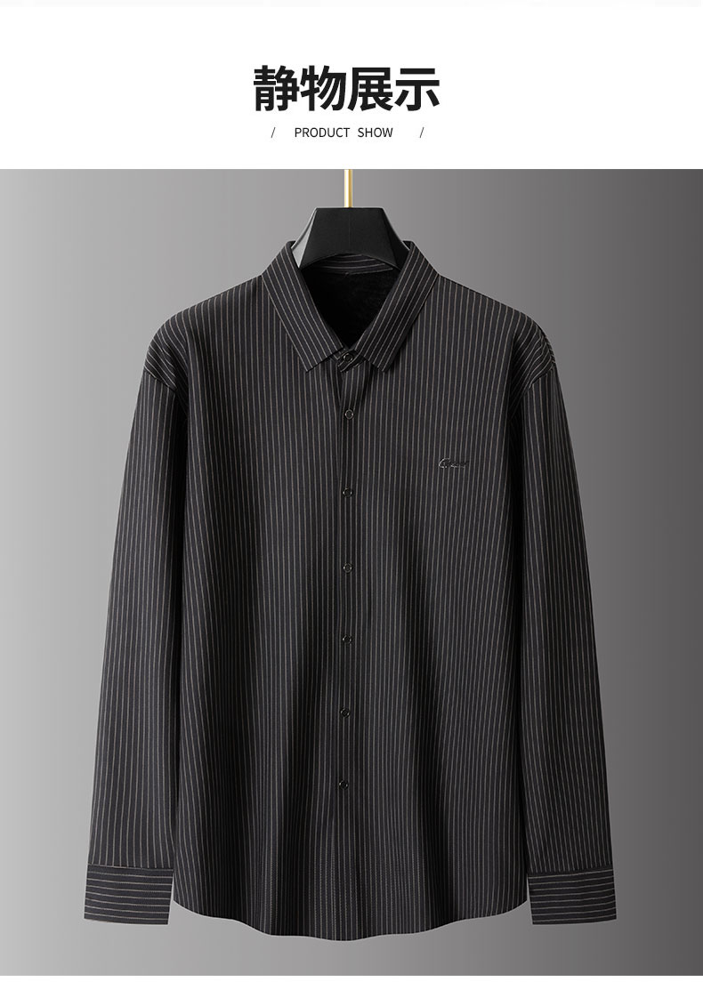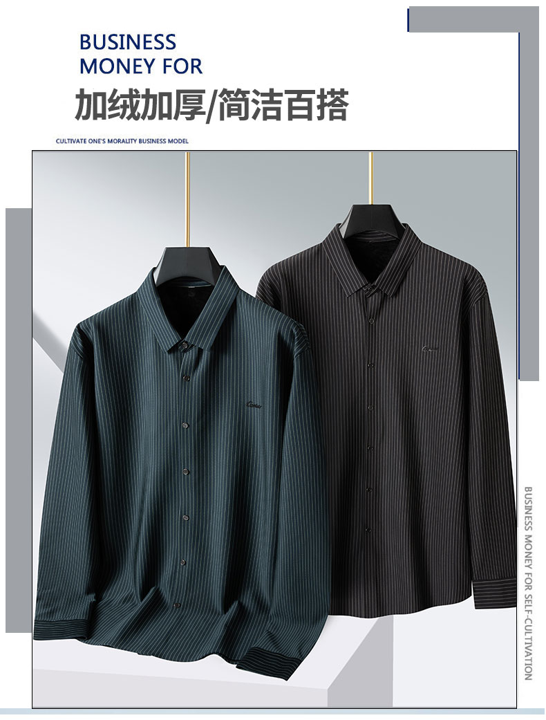 【加绒】【新款DPS】大依优型大码竖条纹长袖衬衫弹力加肥加大胖子上衣男士T恤肥佬打底男装