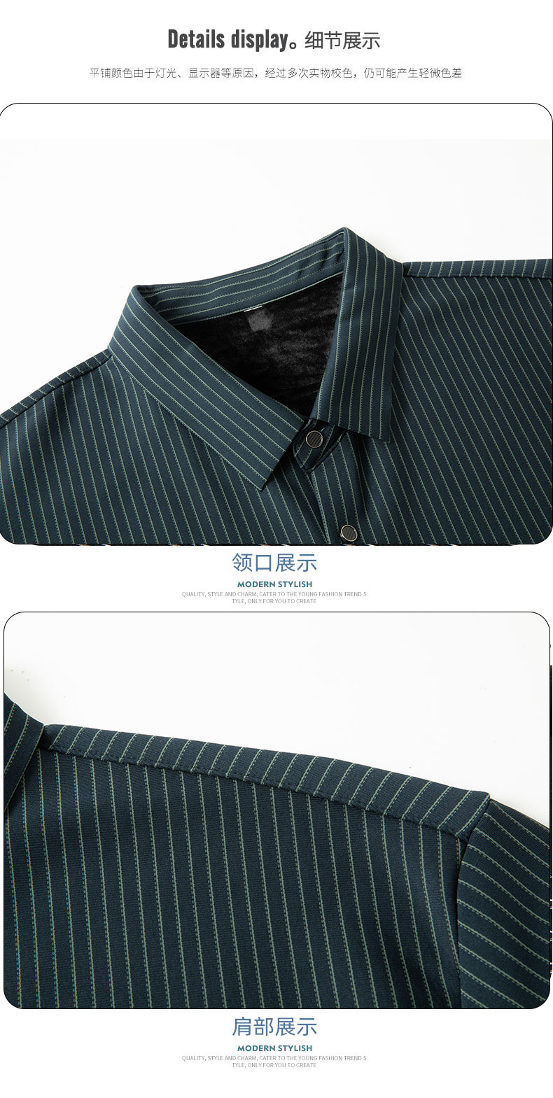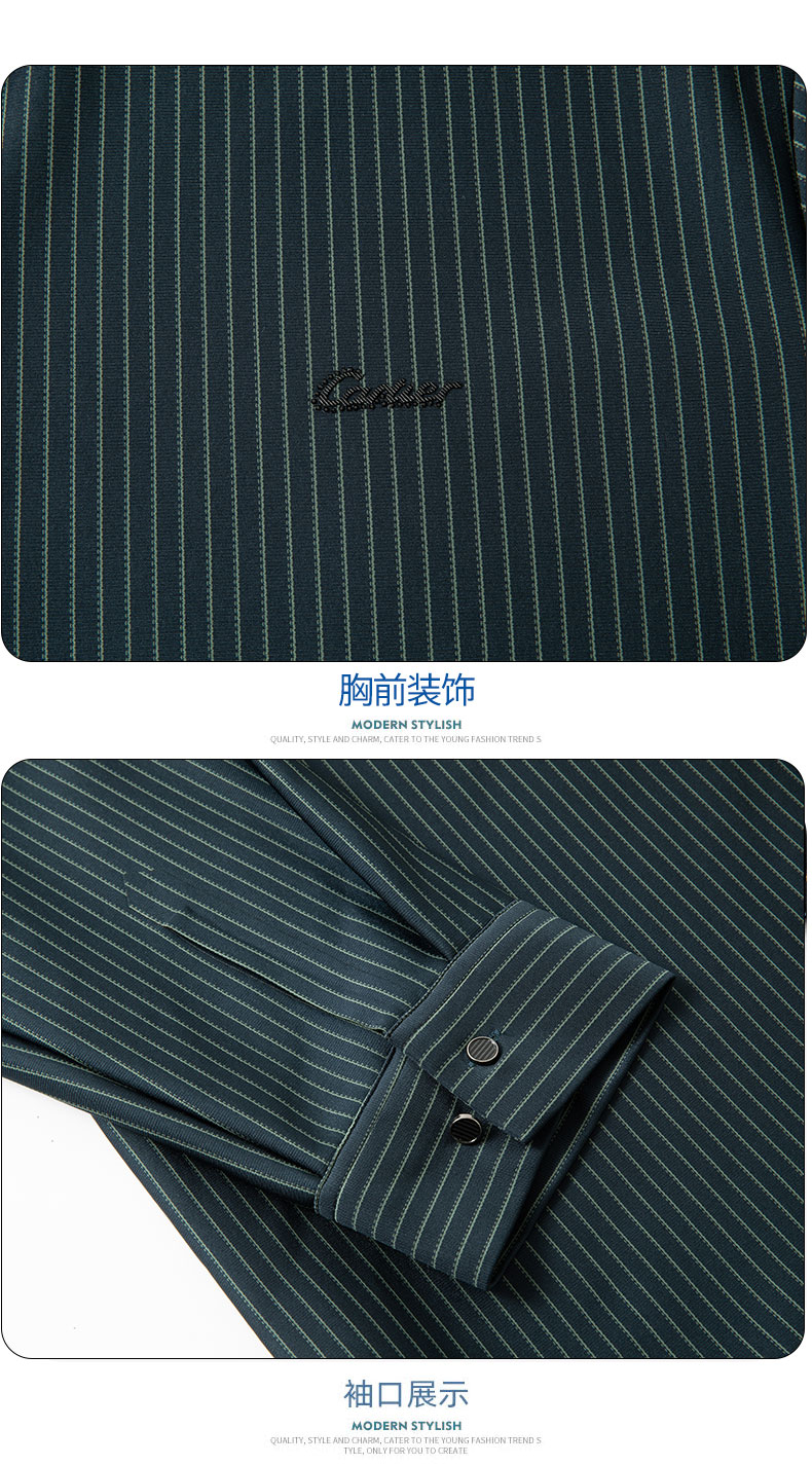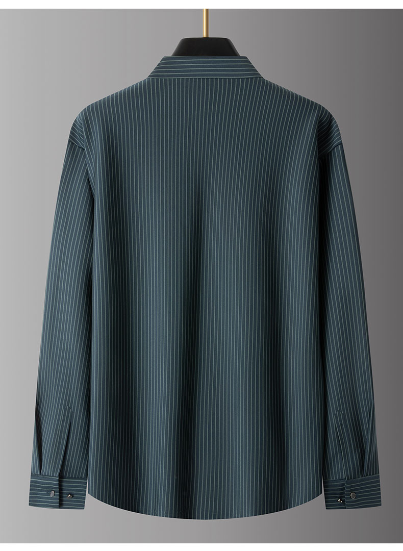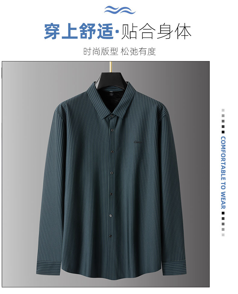 【加绒】【新款DPS】大依优型大码竖条纹长袖衬衫弹力加肥加大胖子上衣男士T恤肥佬打底男装
