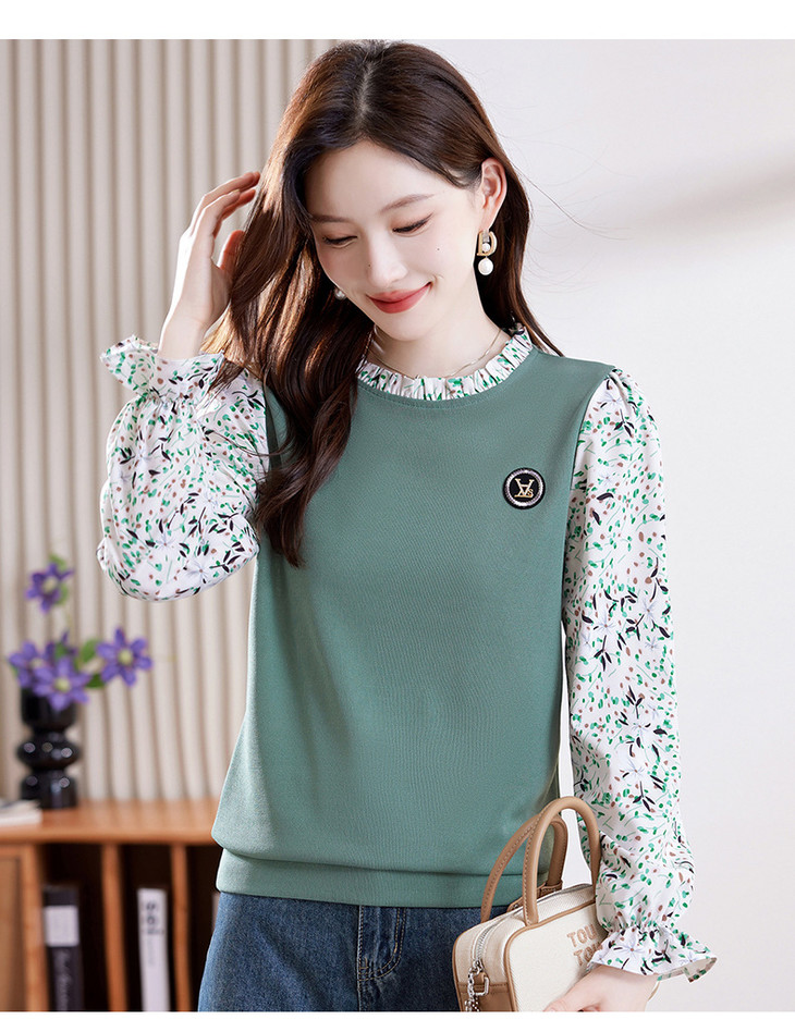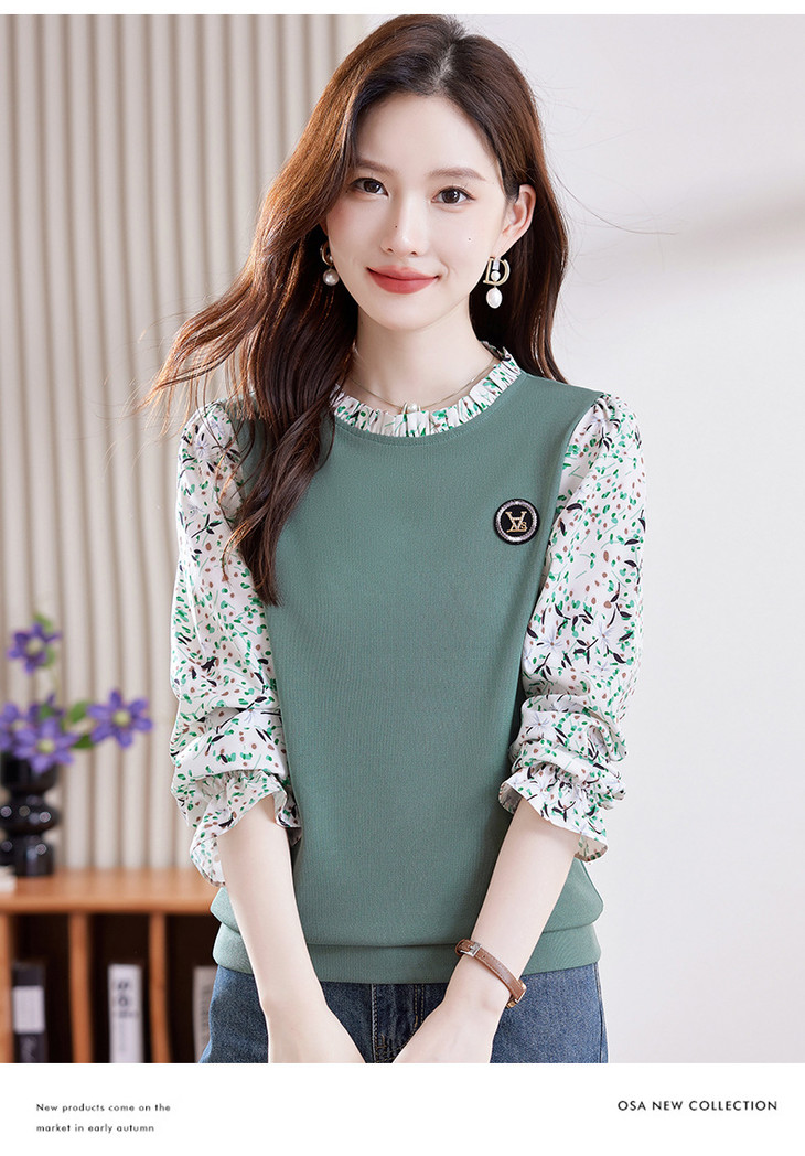 2025秋款宽松百搭木耳边假两件上衣TR-CJ8155 商品图0