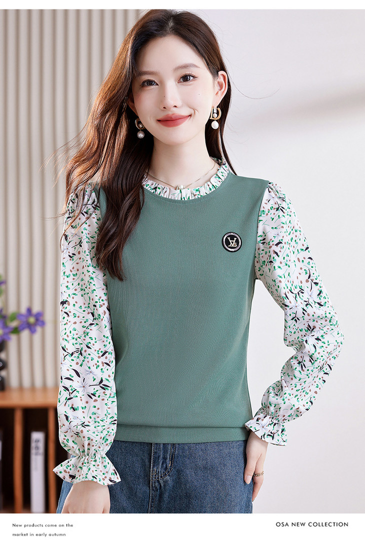 2025秋款宽松百搭木耳边假两件上衣TR-CJ8155 商品图3