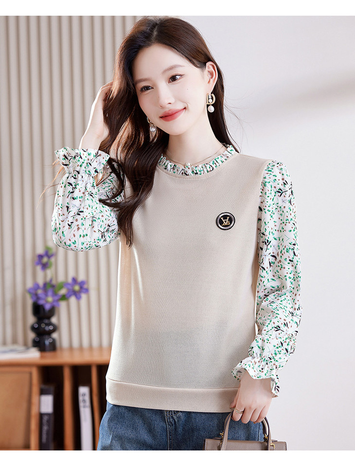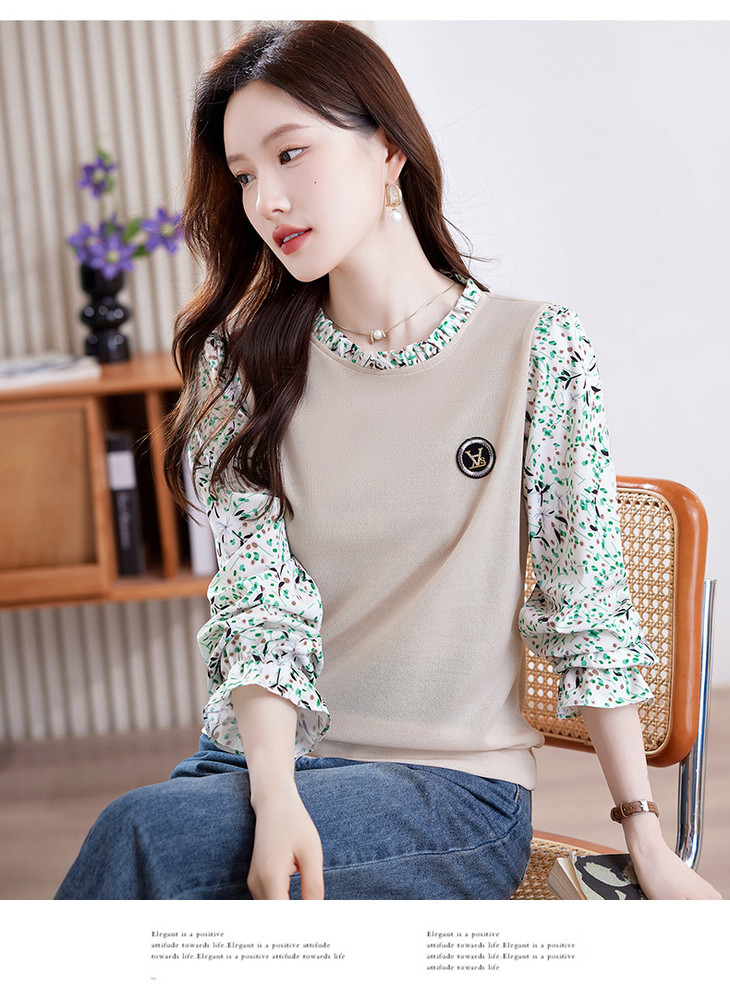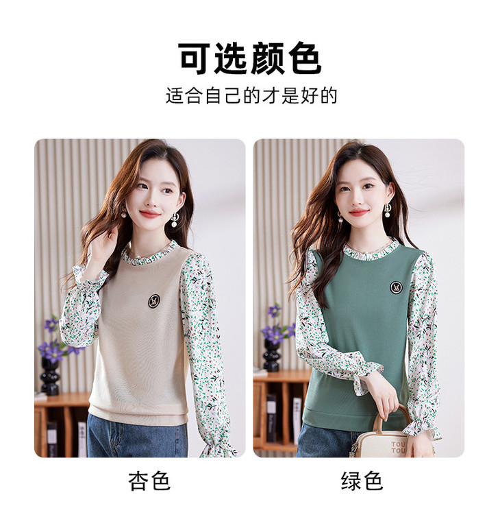 2025秋款宽松百搭木耳边假两件上衣TR-CJ8155 商品图1
