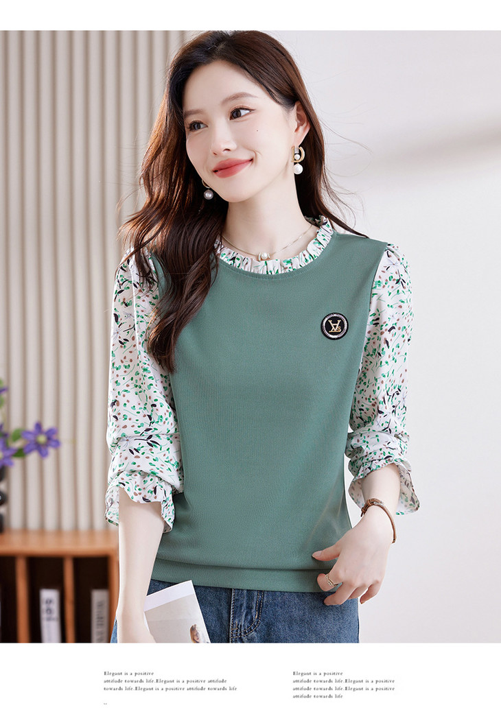 2025秋款宽松百搭木耳边假两件上衣TR-CJ8155 商品图2