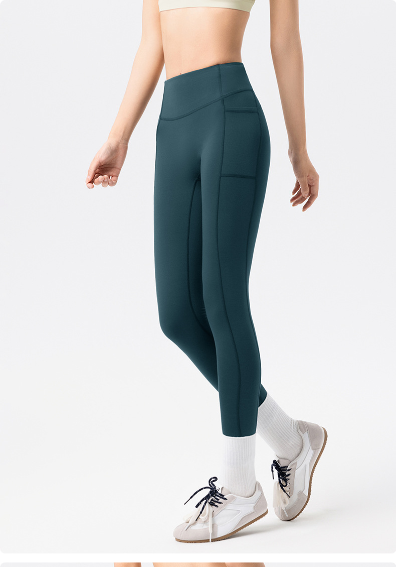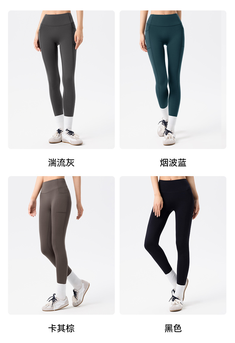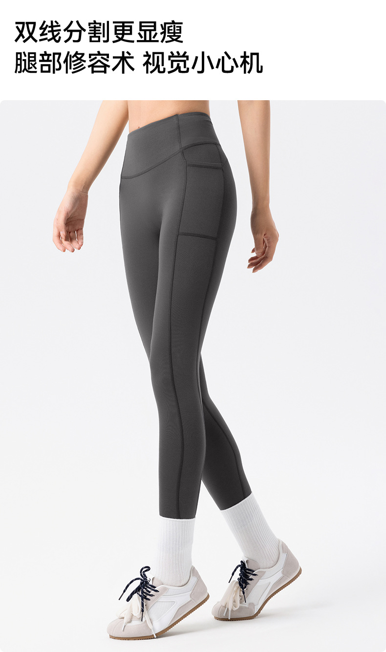 【限时秒】YOGACODE【火树银花系列】秋冬薄绒保暖健身长裤侧边带口袋蜜桃提臀收腹裤DWP125552