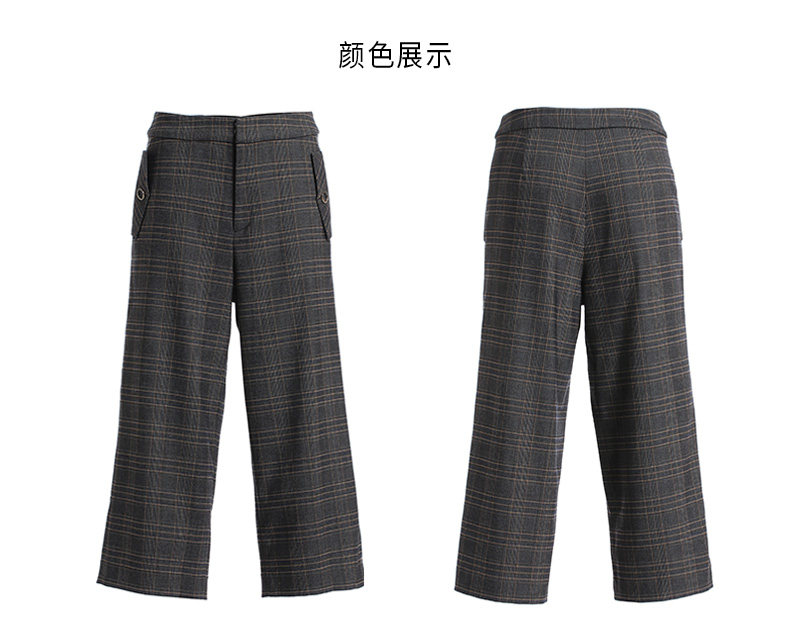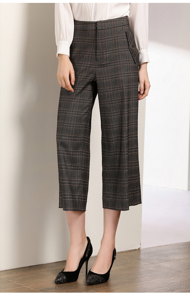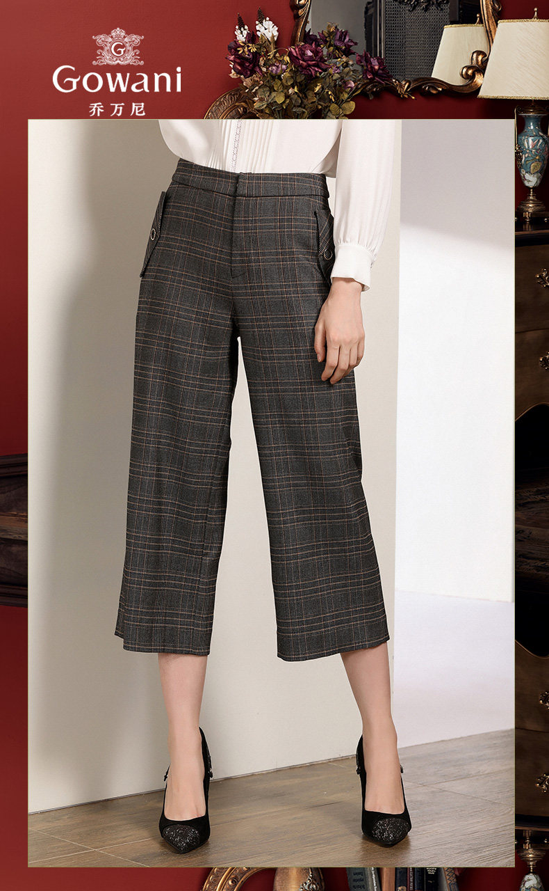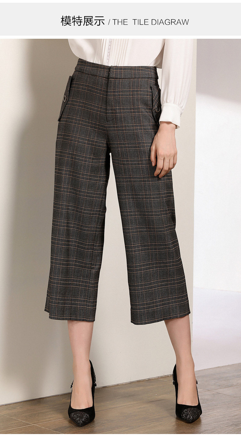 乔万尼裤子女秋格子高腰垂感时尚通勤宽松直筒休闲阔腿裤EN3F303