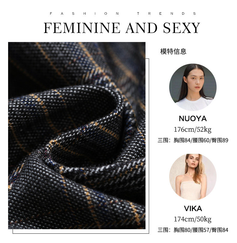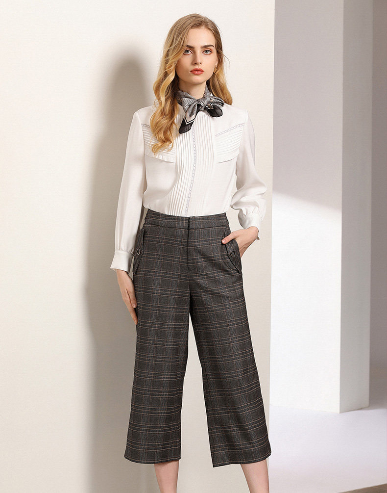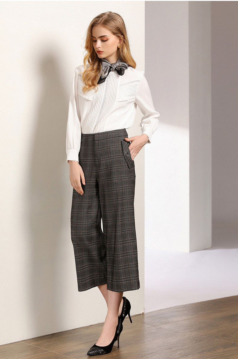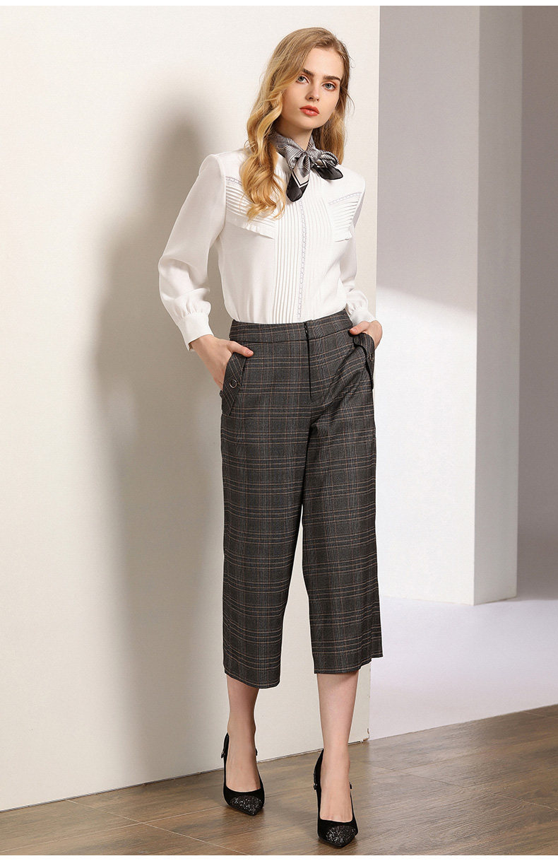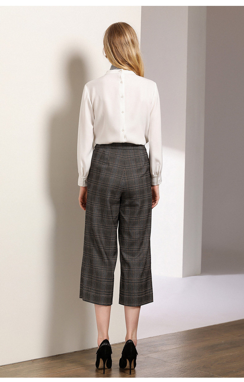 乔万尼裤子女秋格子高腰垂感时尚通勤宽松直筒休闲阔腿裤EN3F303
