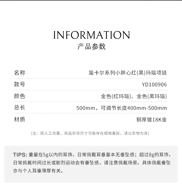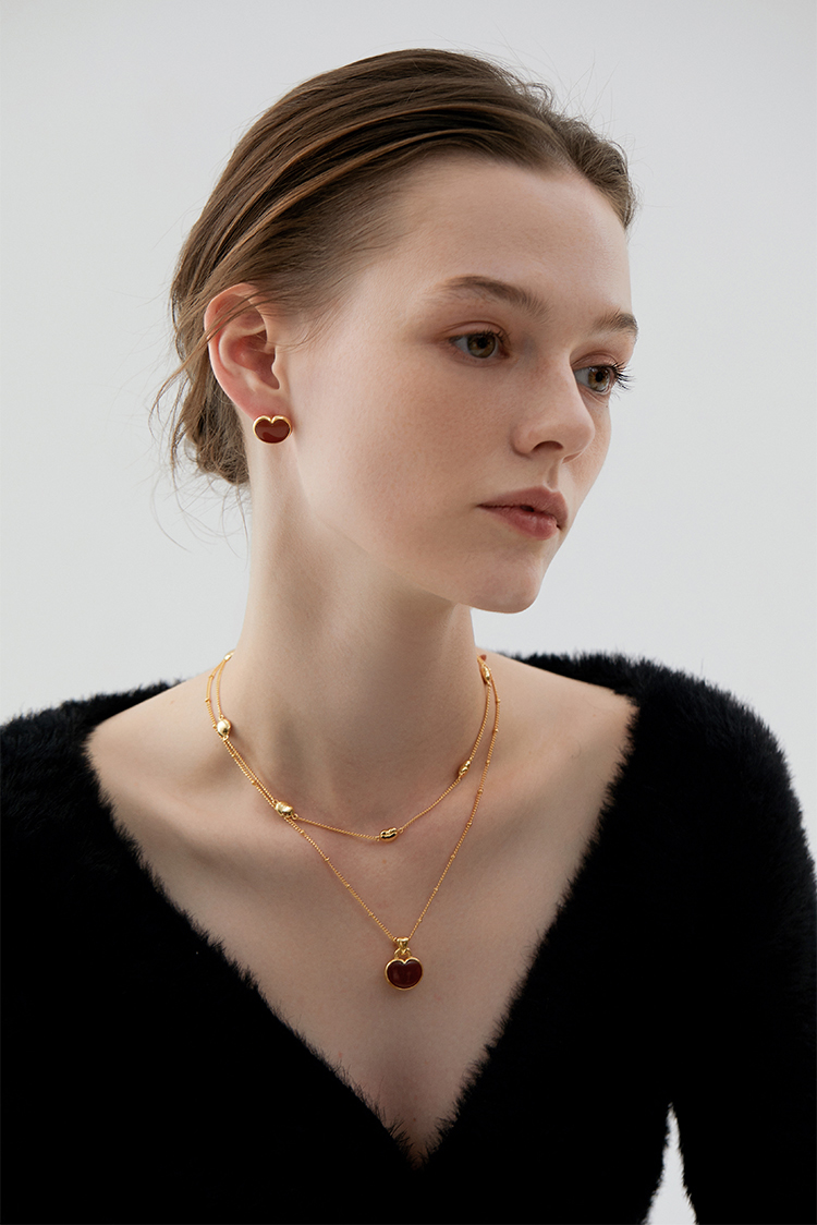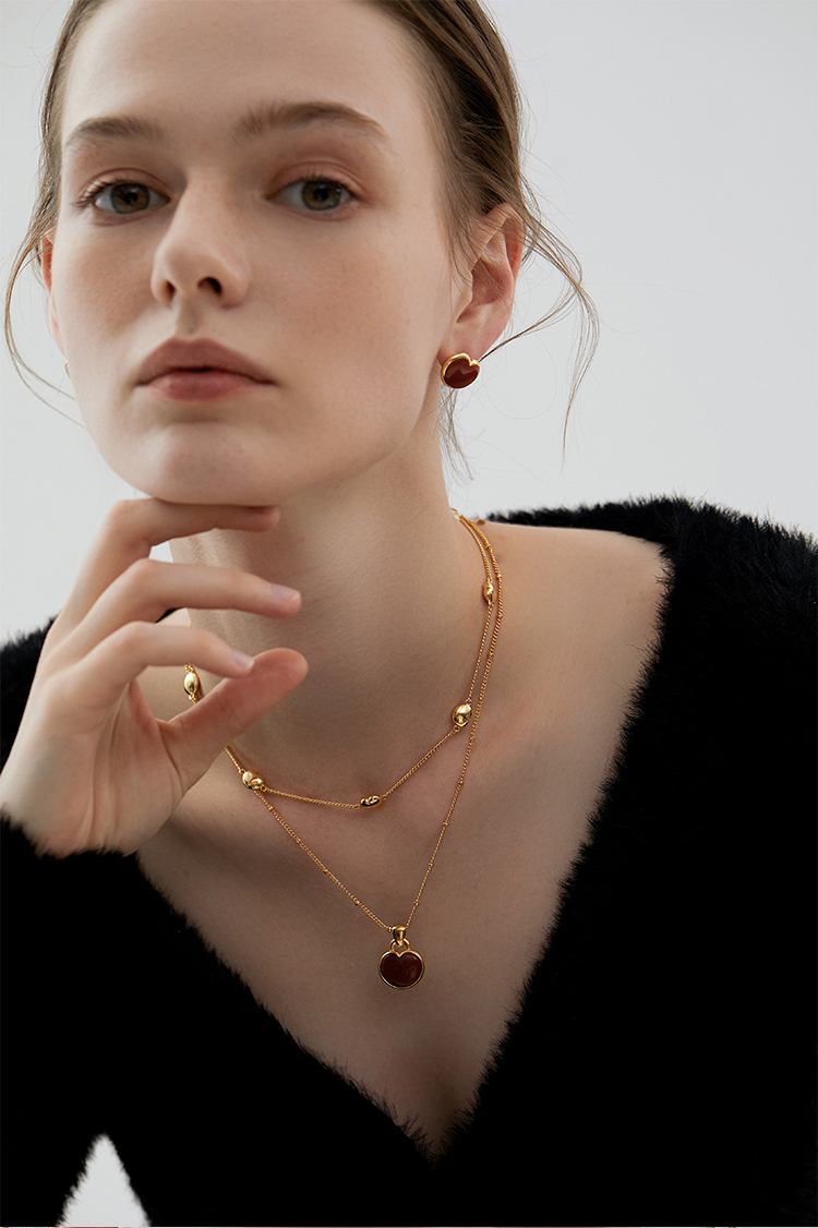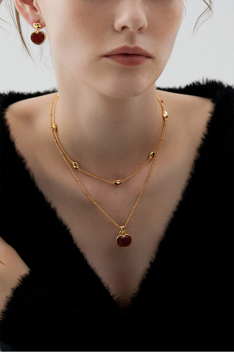 盐岛 笛卡尔小胖心红黑玛瑙项链