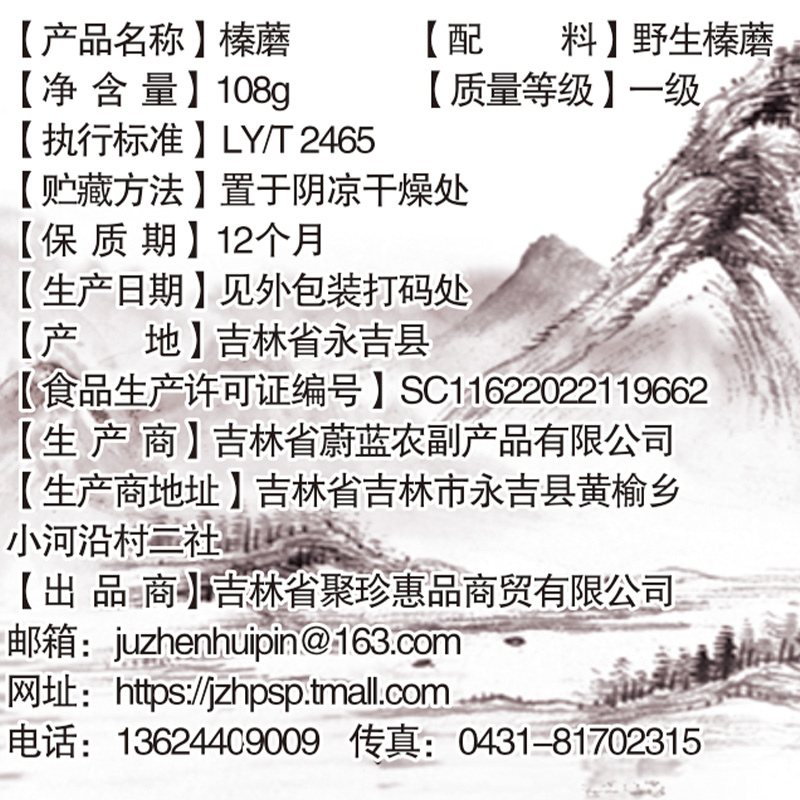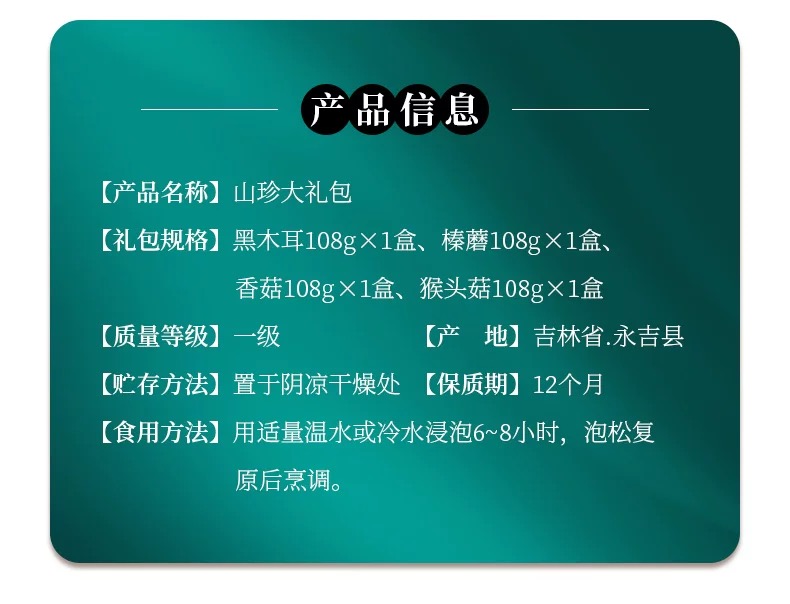 聚珍惠品长白山菌菇大礼包(108g*4盒/木耳/榛蘑/鹿茸菇/香菇)JL