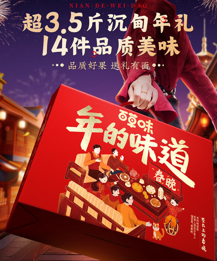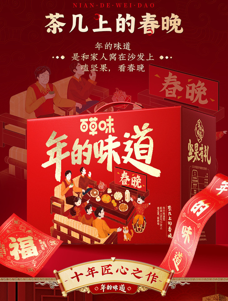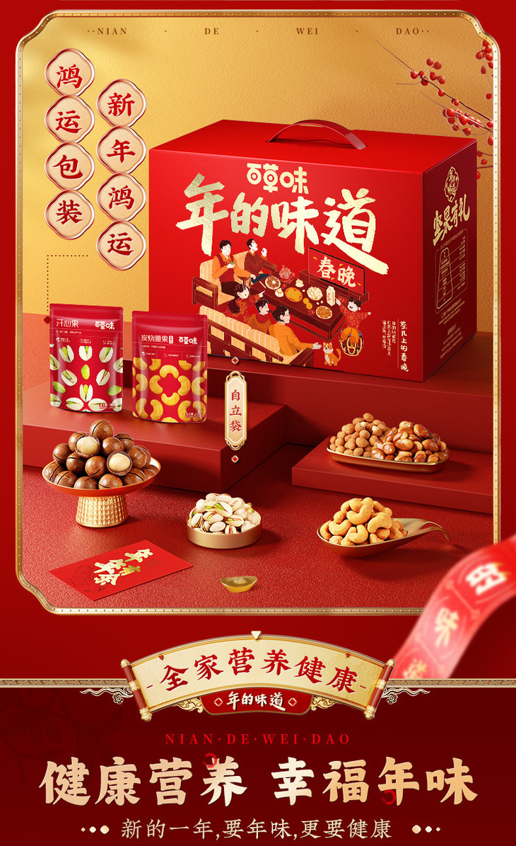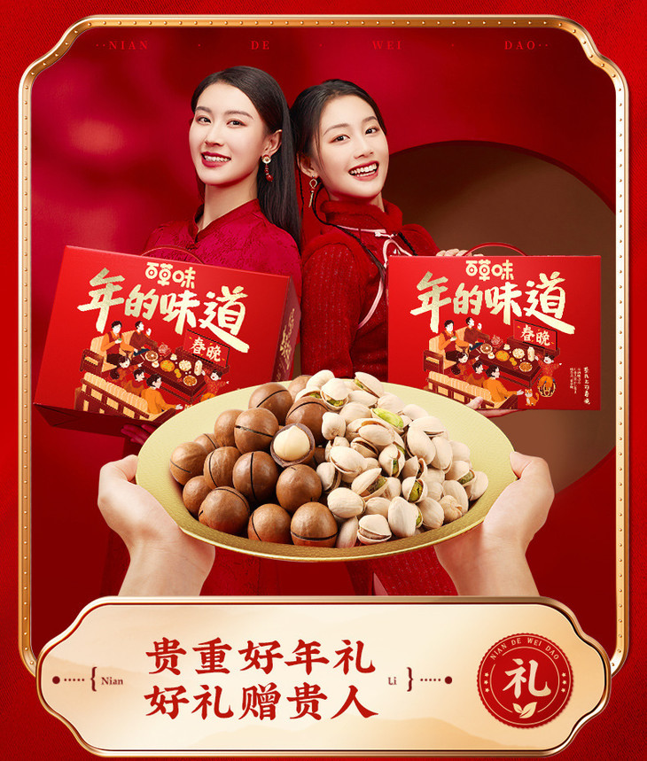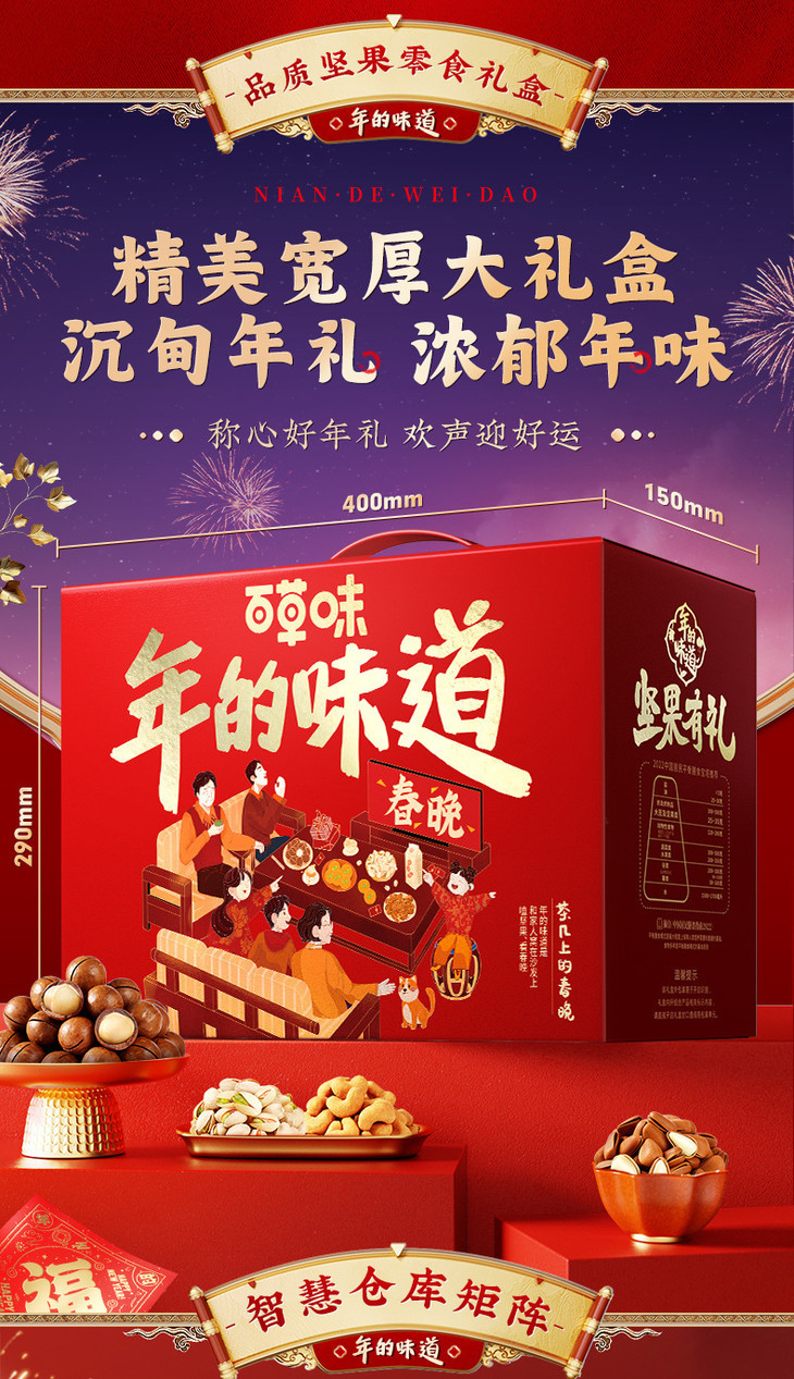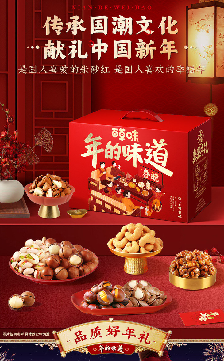 百草味坚果大礼包【年的味道-茶几上的春晚】混合干果礼盒食品网红零食豪华送礼送长辈