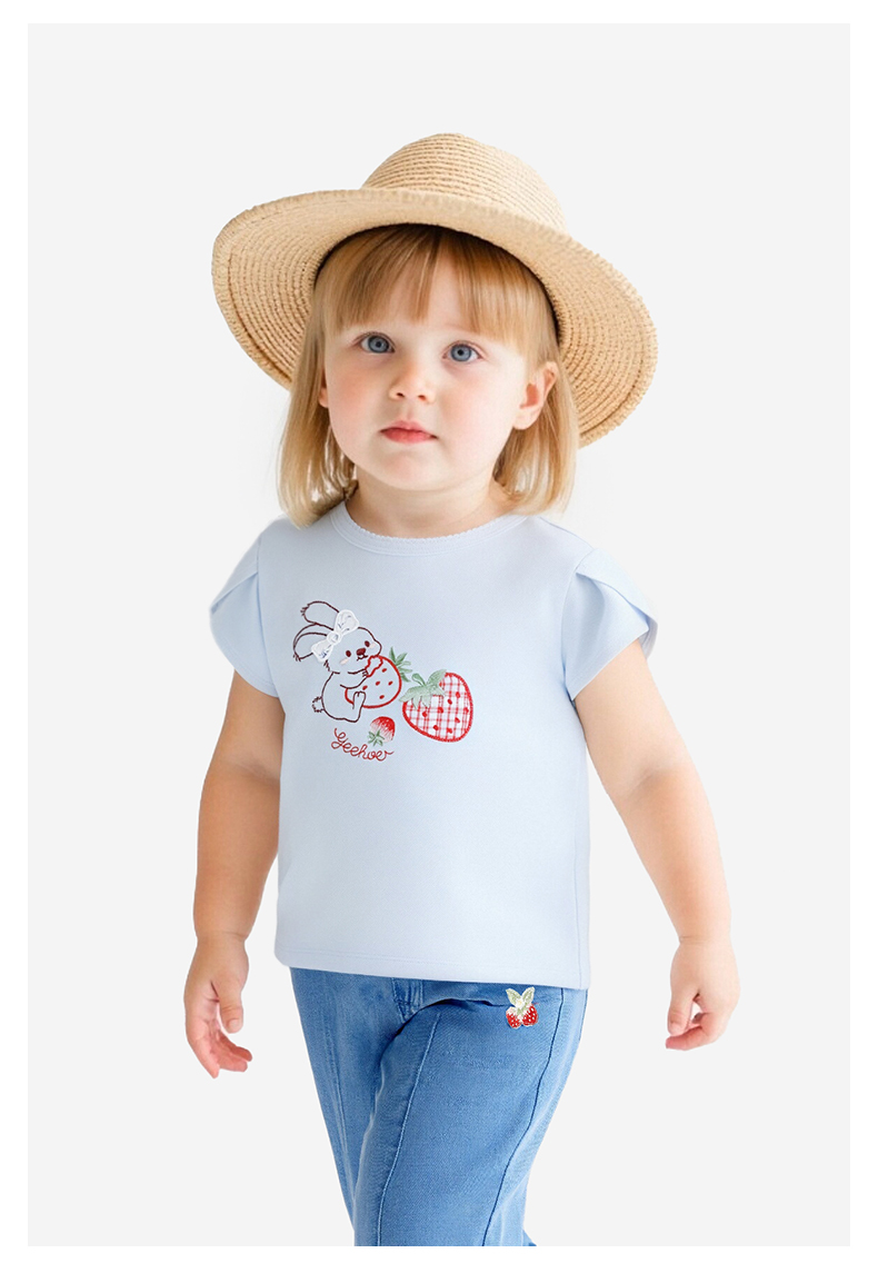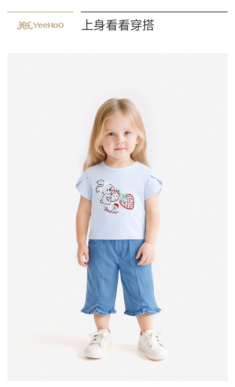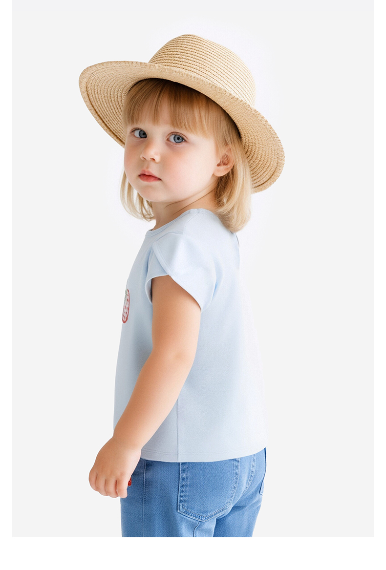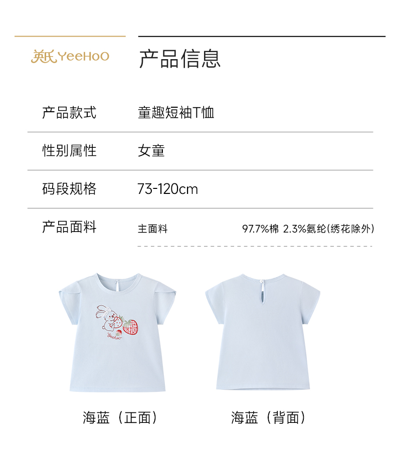 【商场同款】英氏女童短袖T恤夏新款海蓝上衣儿童圆领打底衫