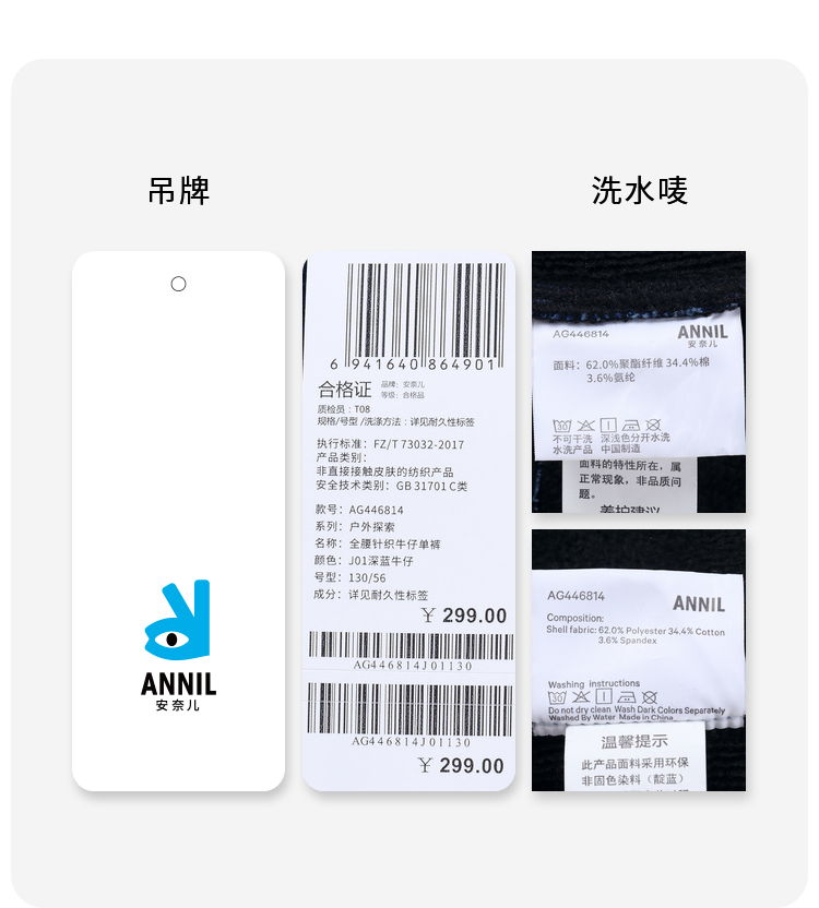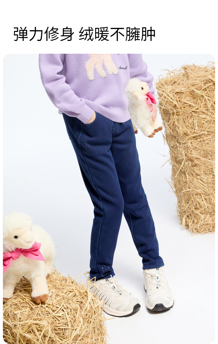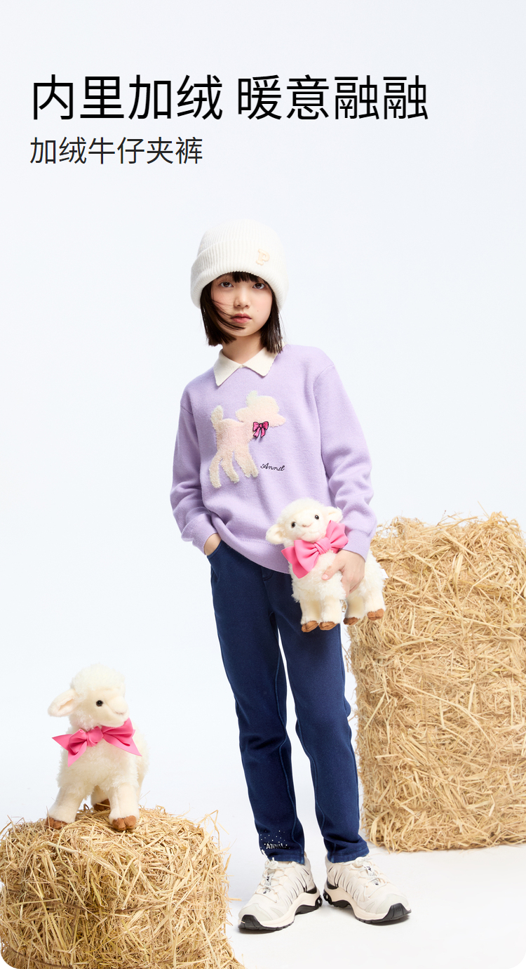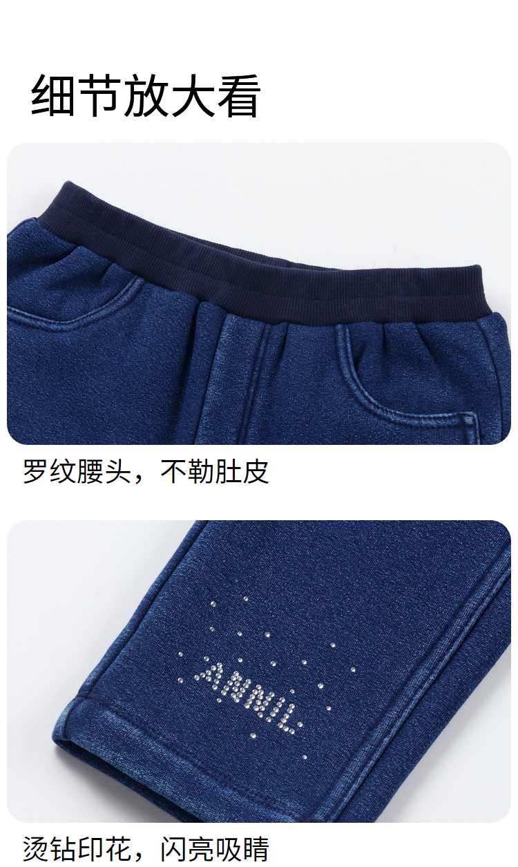 女童加绒牛仔夹裤冬季新款安奈儿童装实体店同款AG446814