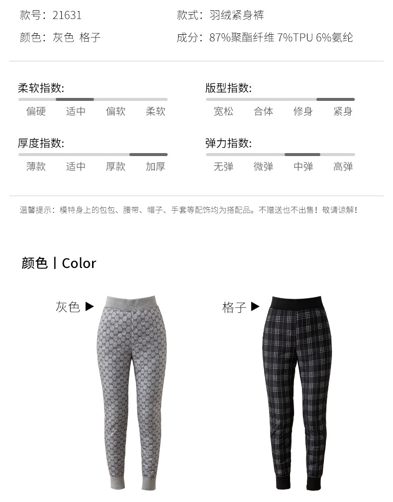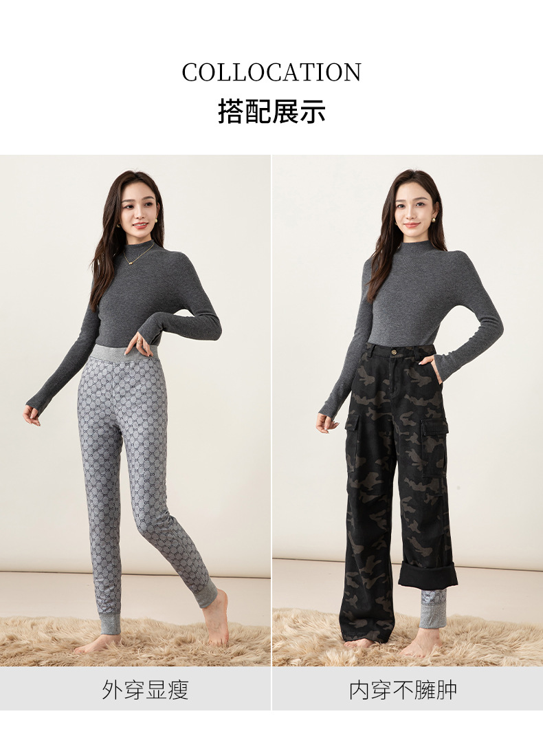 丁摩 内穿羽绒裤女加绒加厚轻薄抗寒保暖保暖裤21CF631 商品图4