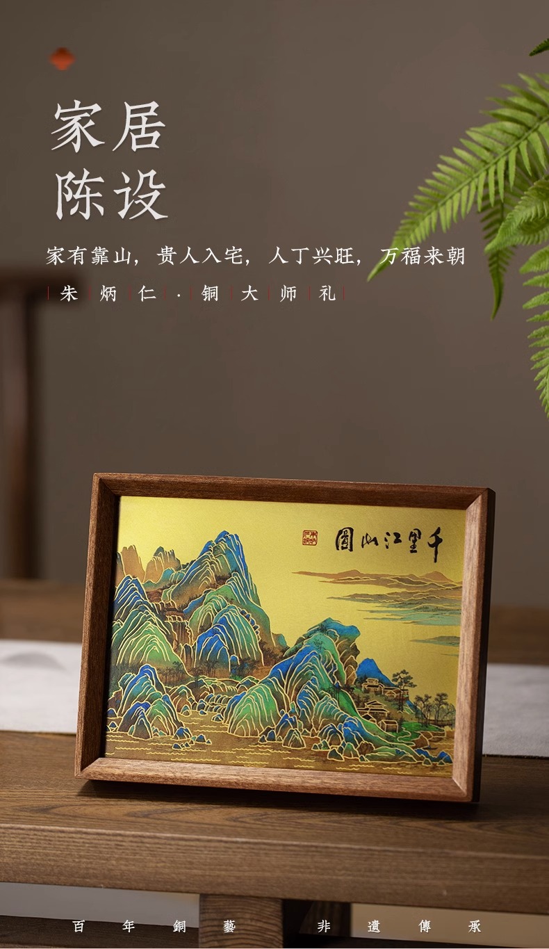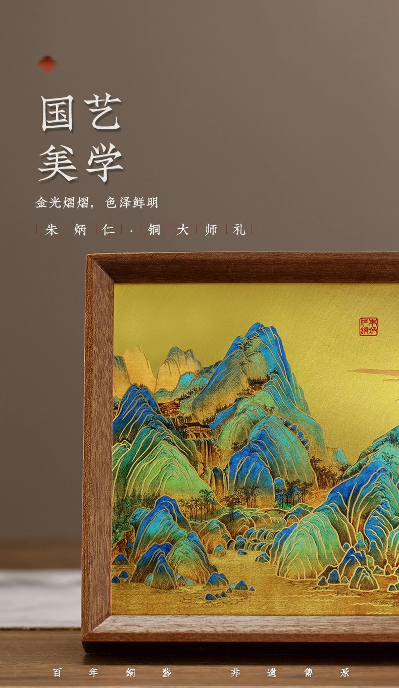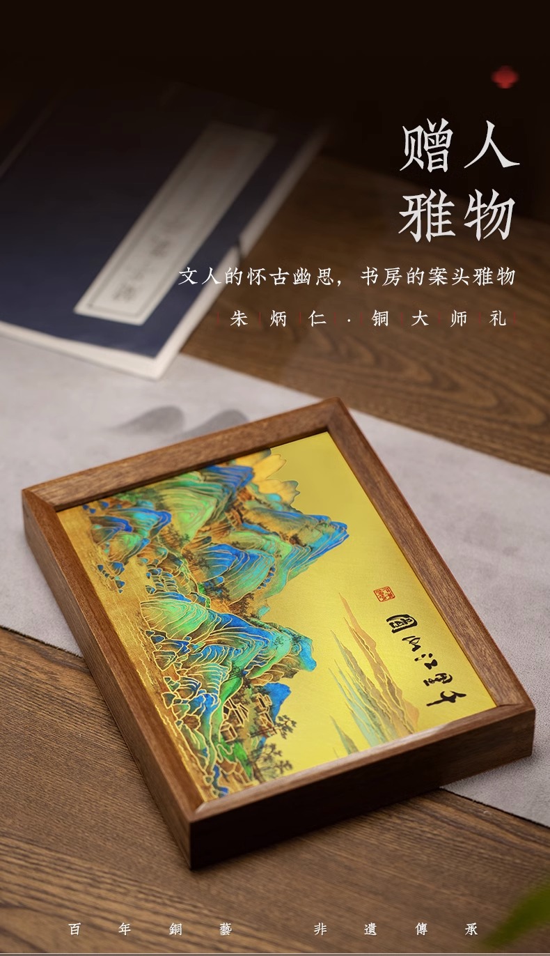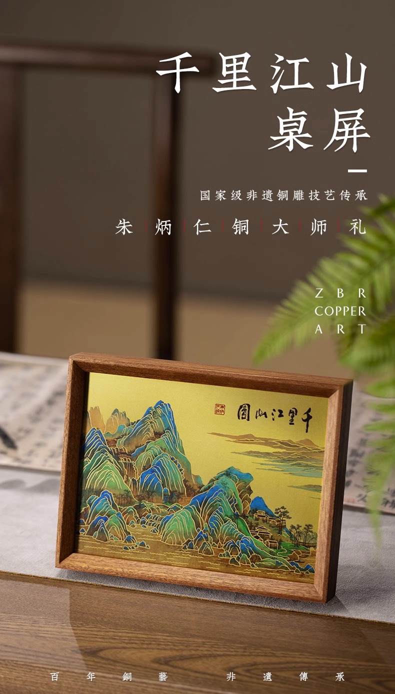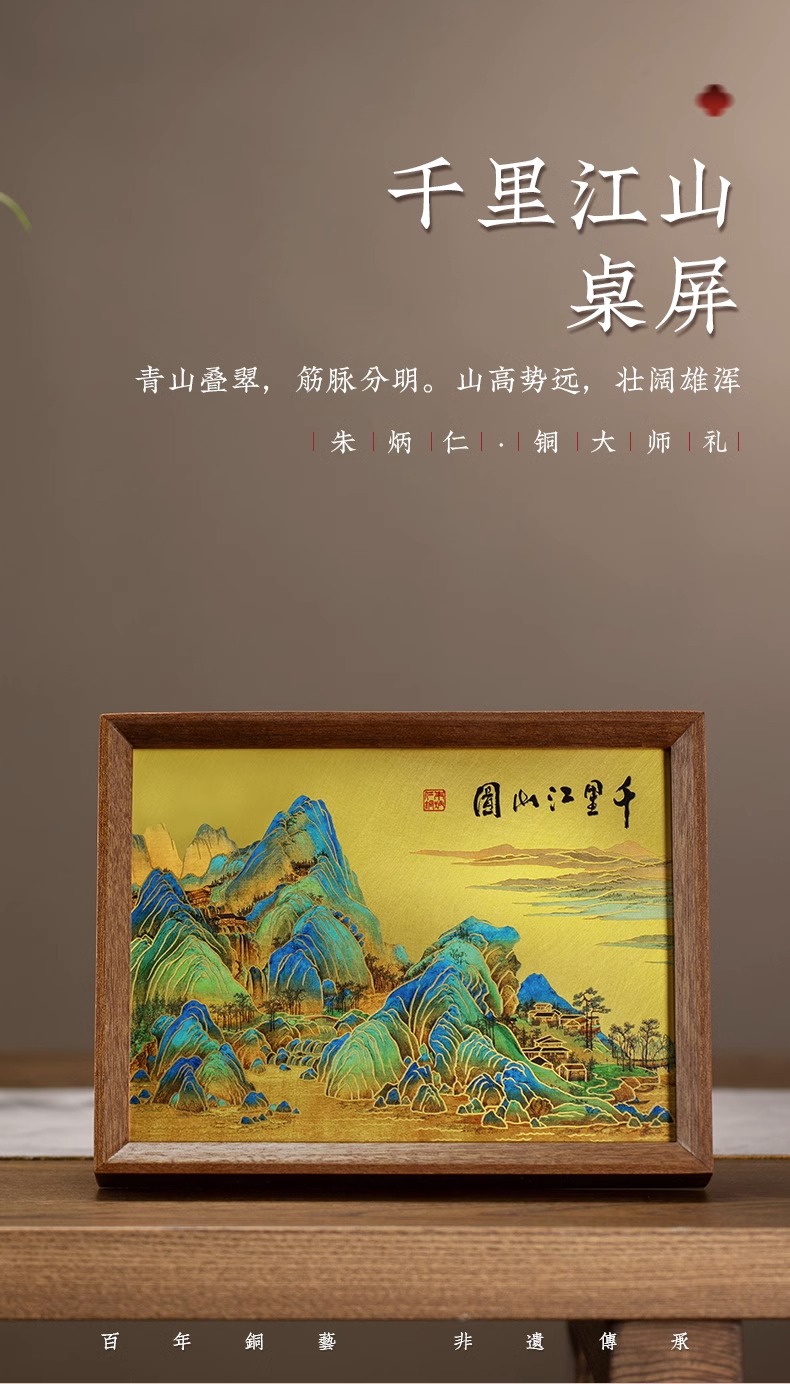 朱炳仁铜 《千里江山》桌屏 铜雕画书房办公室桌面装饰画
