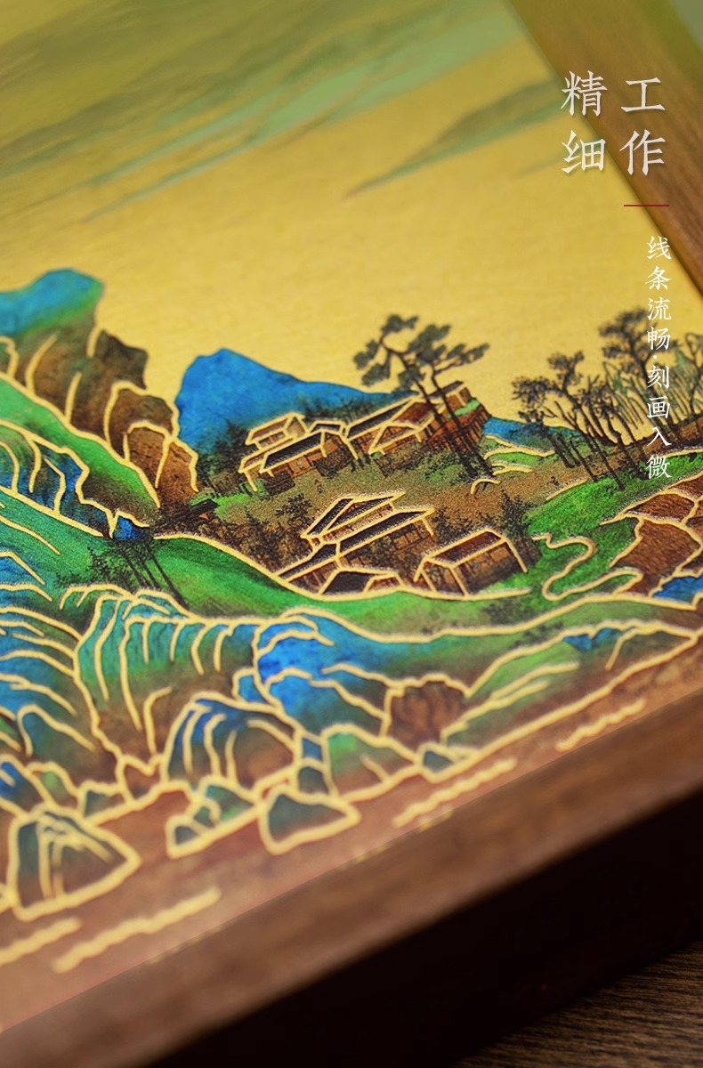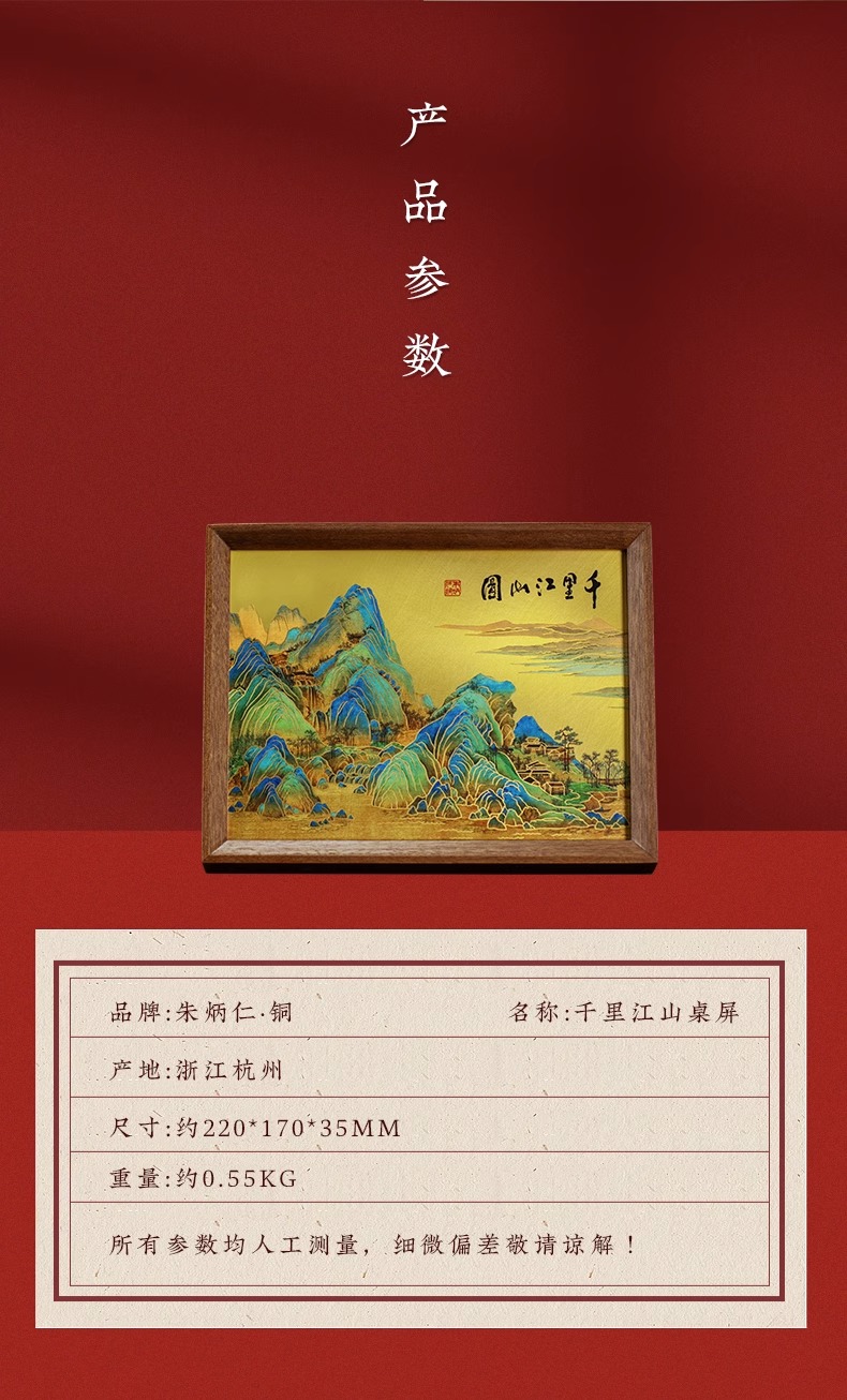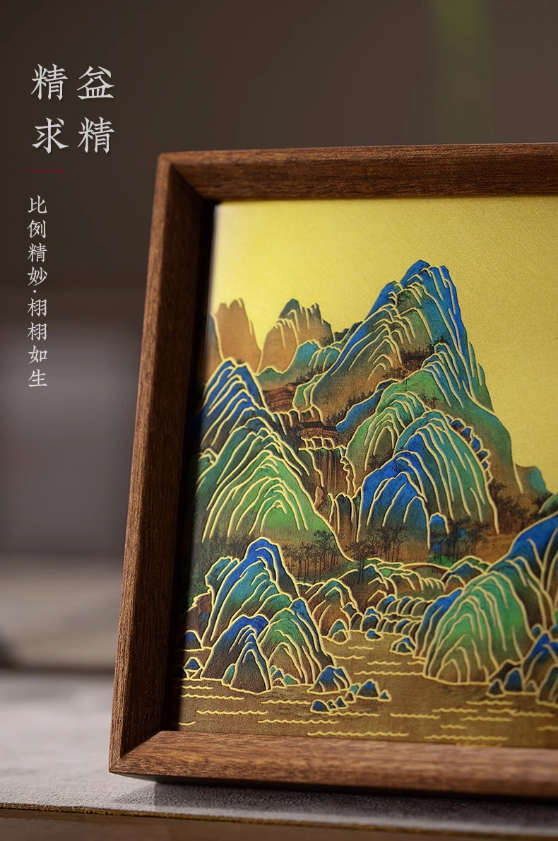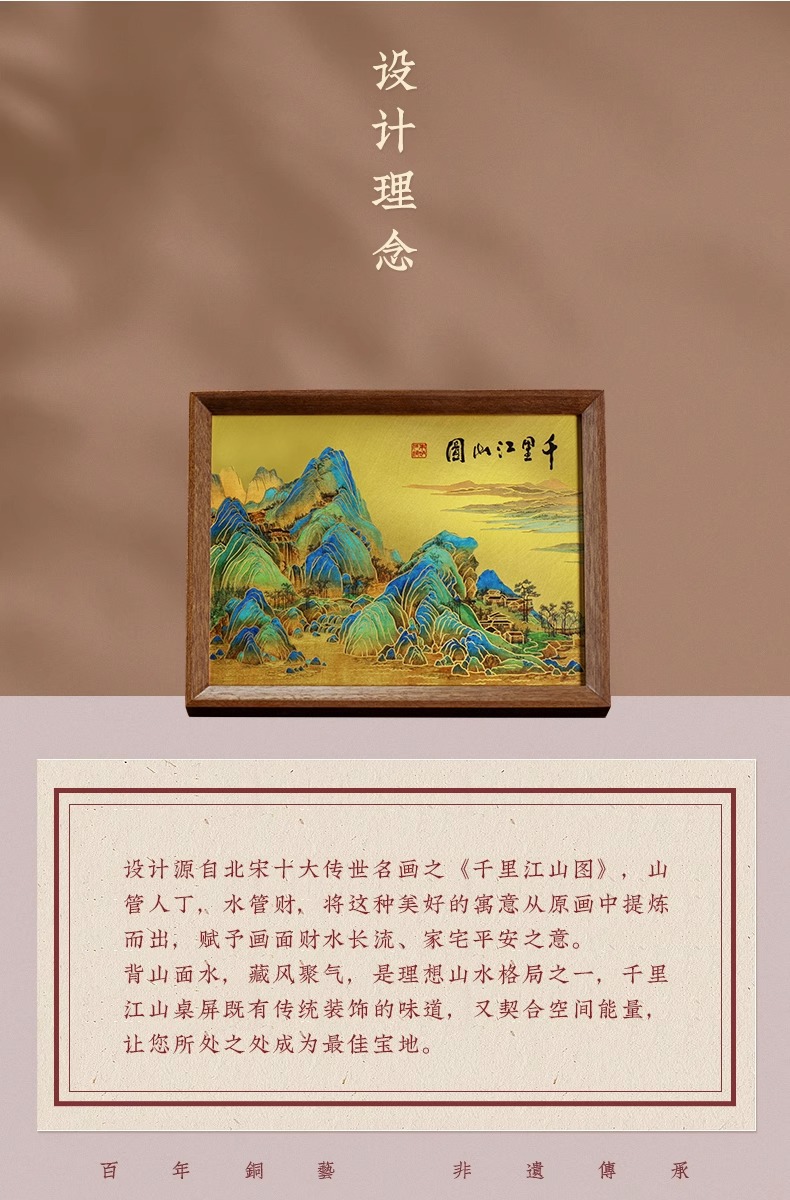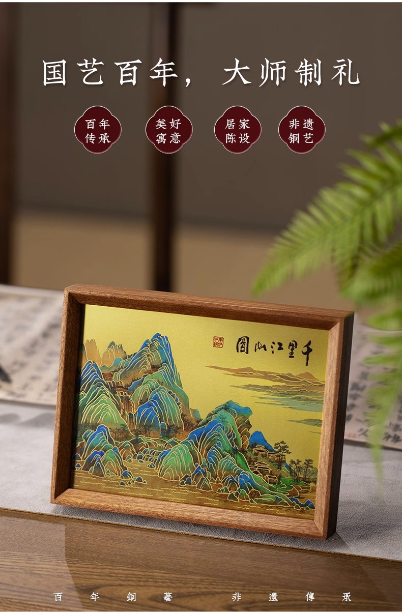 朱炳仁铜 《千里江山》桌屏 铜雕画书房办公室桌面装饰画