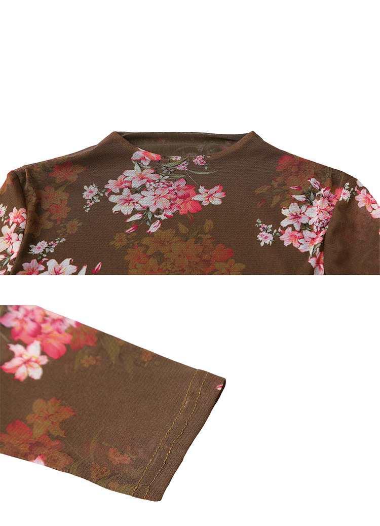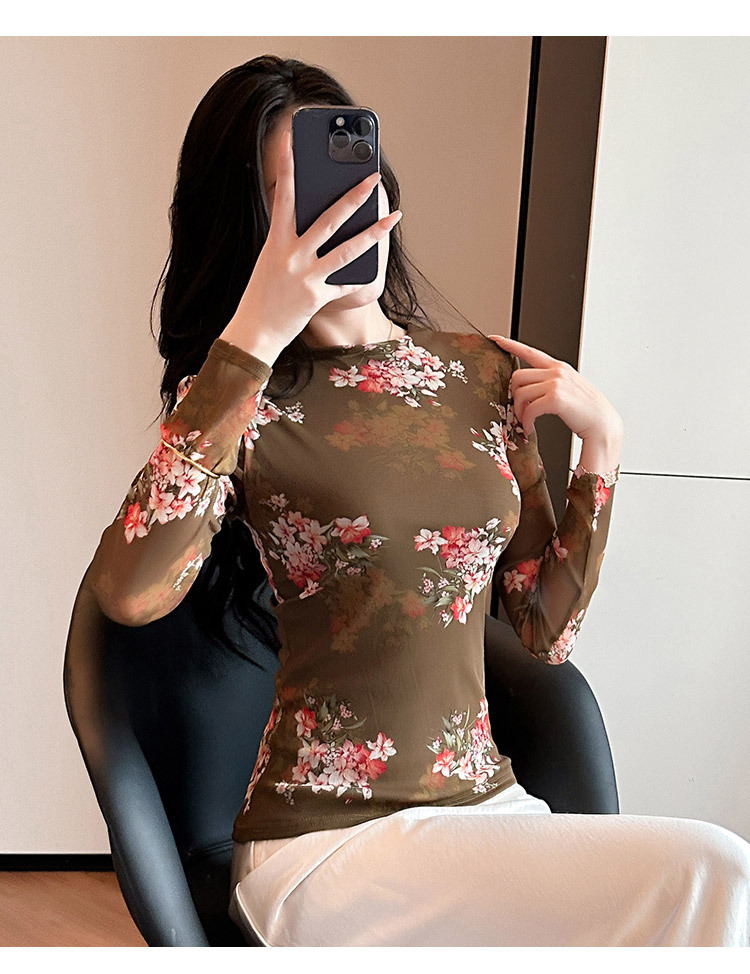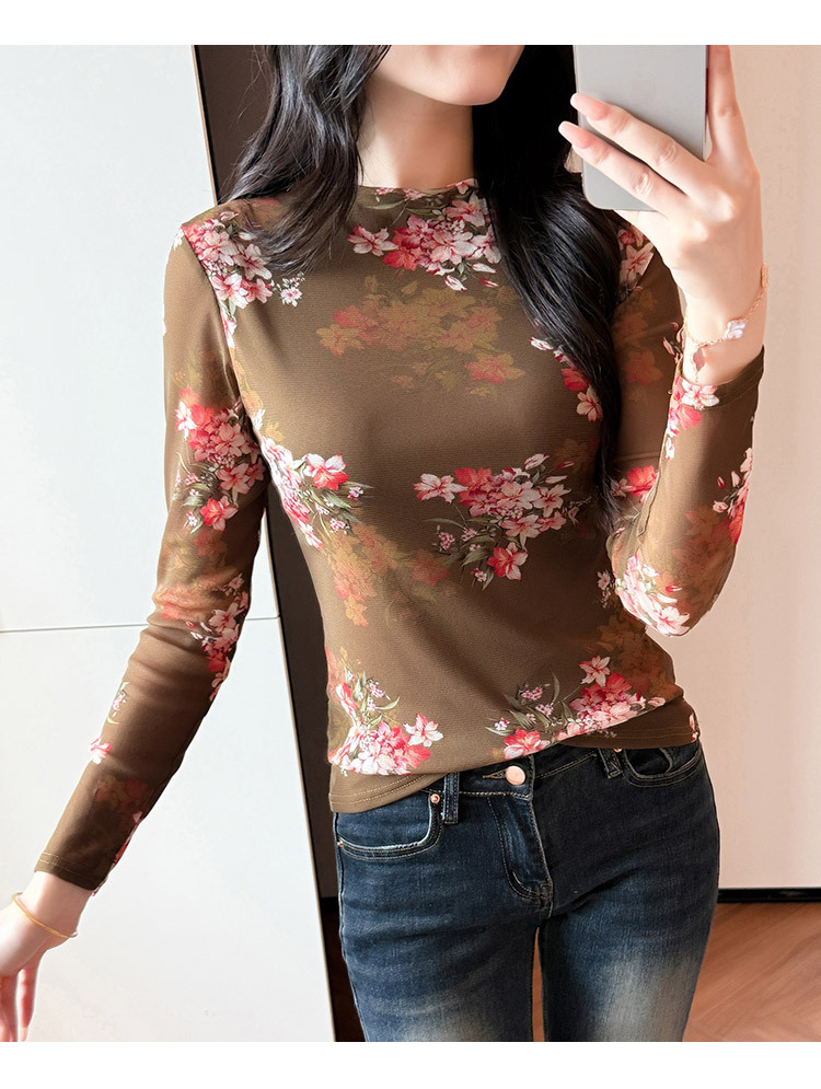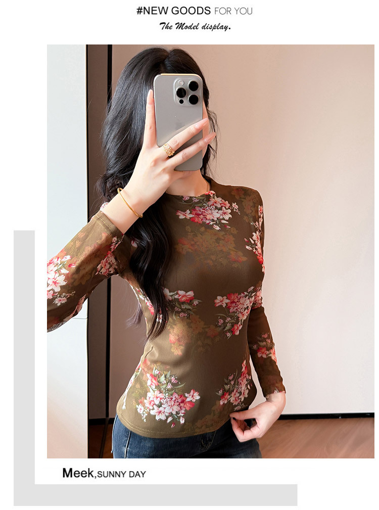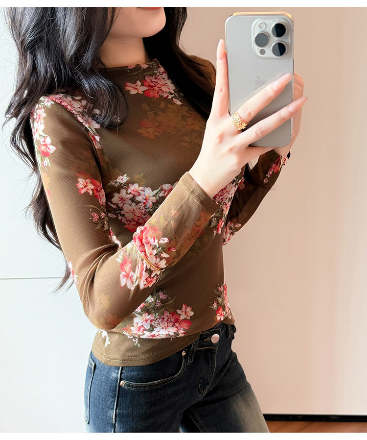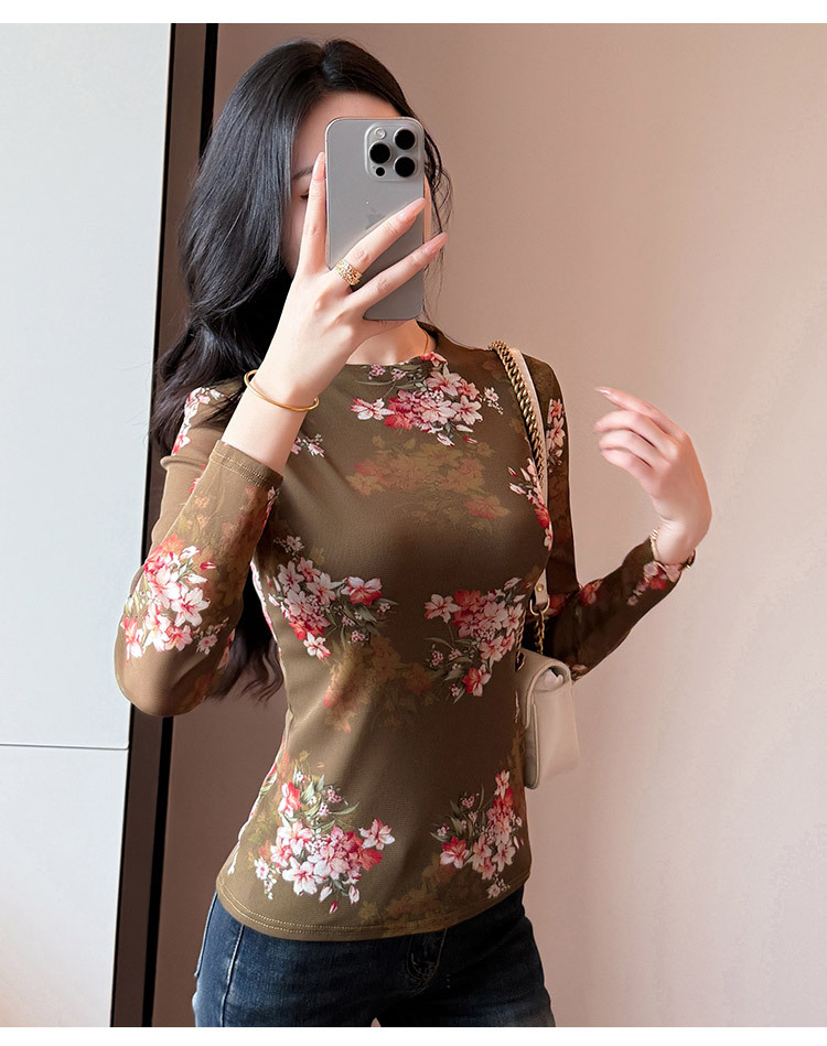 KQL A55F8716时尚洋气高弹网长袖T恤印花高领上衣