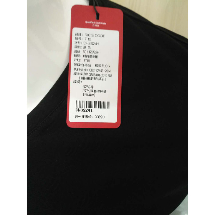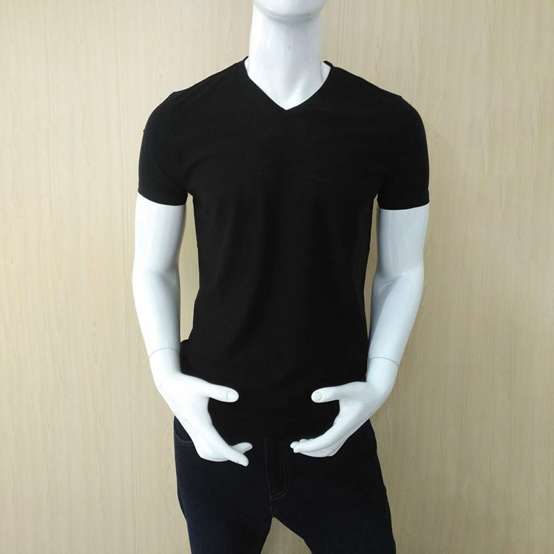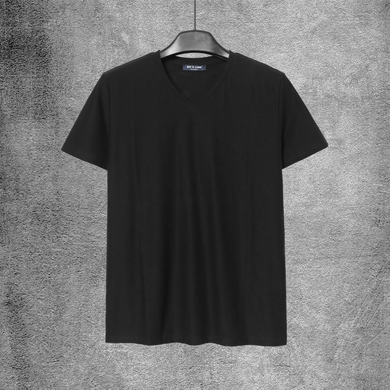 春夏季男士V领丝光棉黑色短袖恤衫 CH8S241*