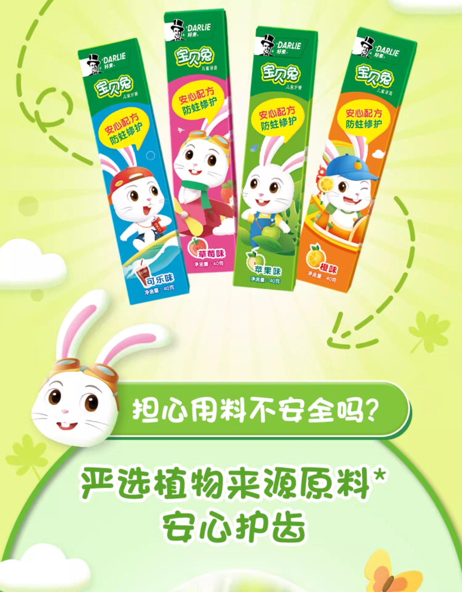 【品牌直发】好来原黑人宝贝兔儿童牙膏40g水果味有效洁齿防蛀护龈清新-批发