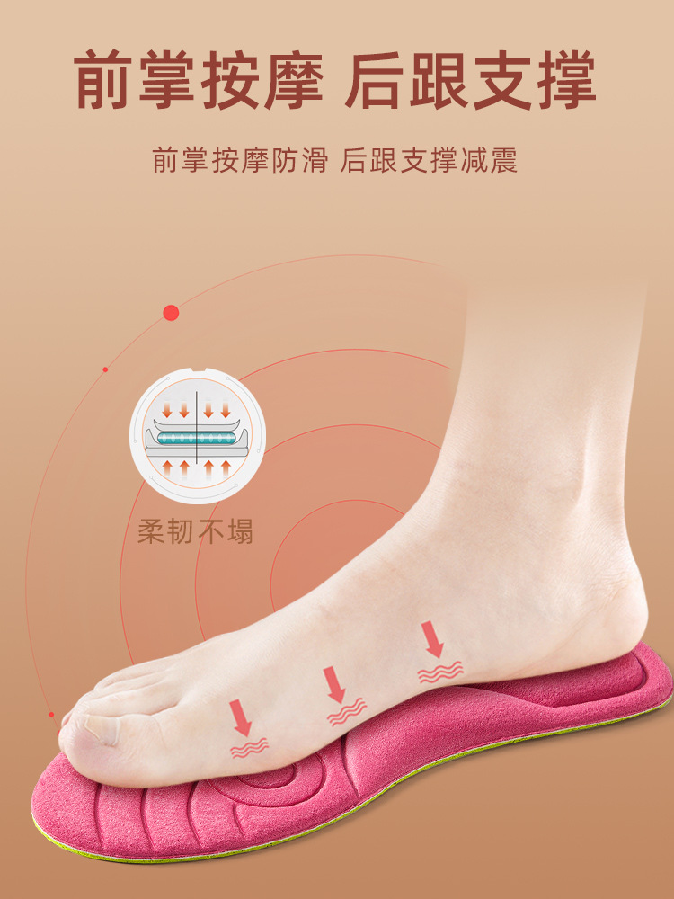 【纳米基因发热恒温鞋垫】升温10℃人体工学脚掌设计前掌按摩后掌支撑可任意裁剪