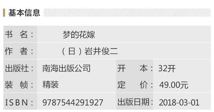《梦的花嫁》是岩井俊二推出的全新长篇小说。