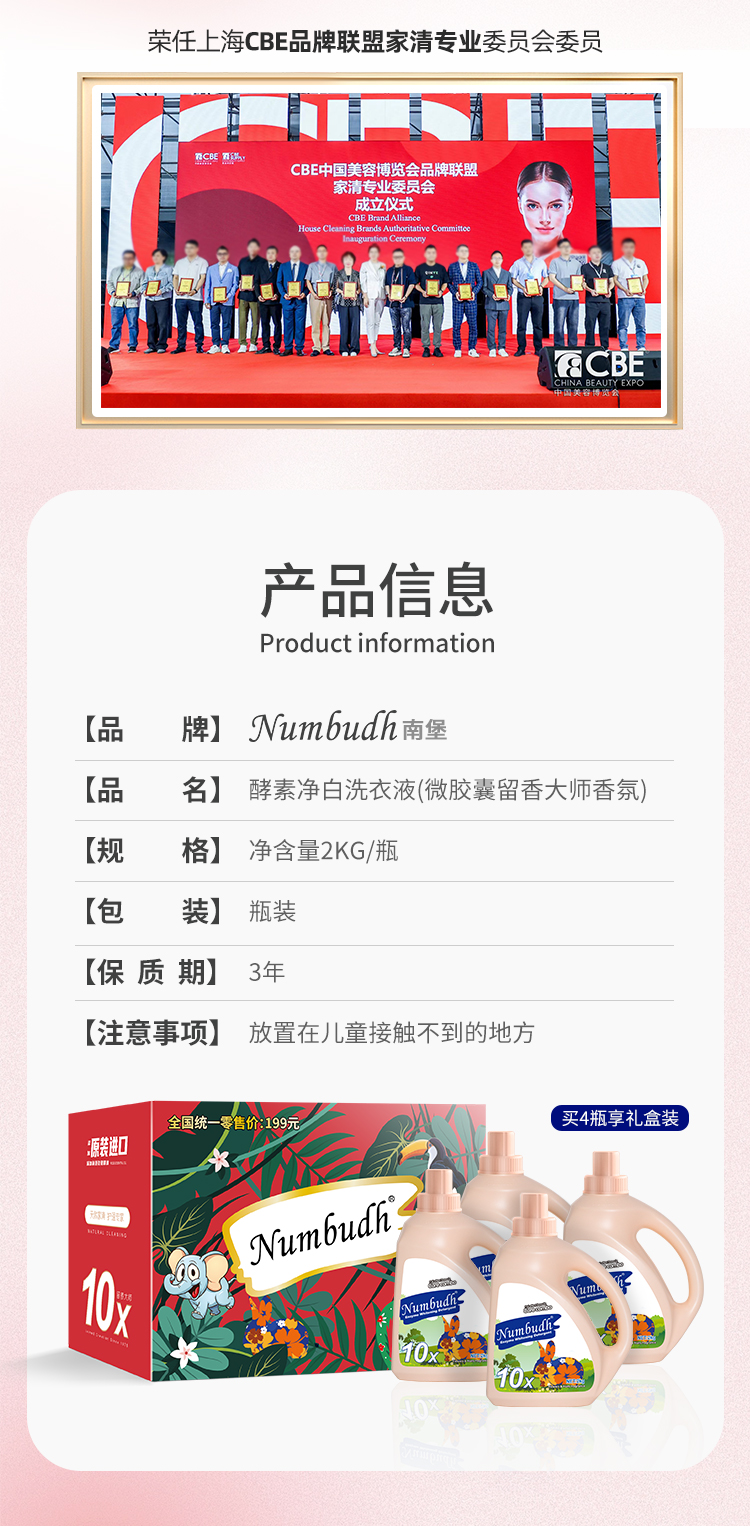 【本来生活&厂家直发】南堡酵素净白洗衣液2kg*4瓶(整箱)