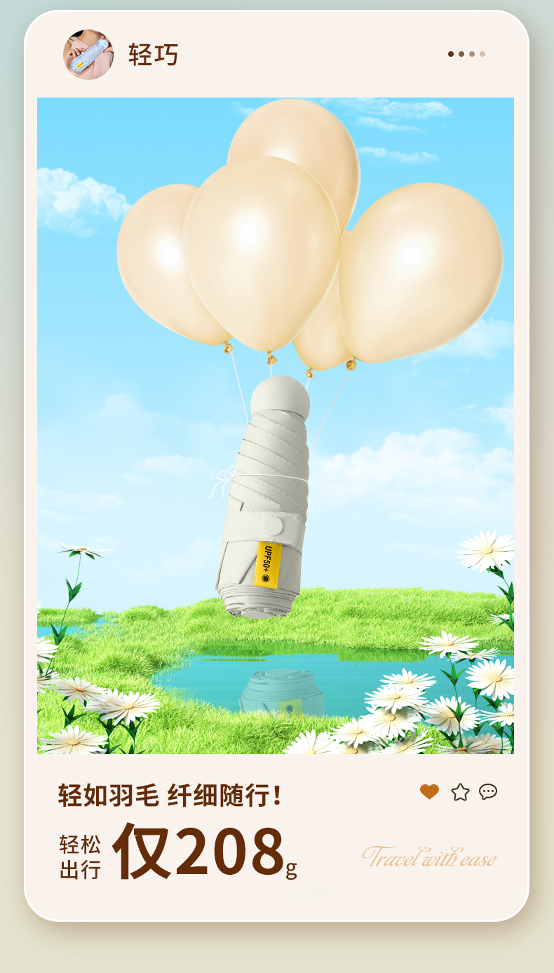 【超轻口袋伞】FIYU口袋太阳伞 晴雨两用 有效防晒/抗风 黑胶防晒设计 UPF50+ 一手可握 轻量便携