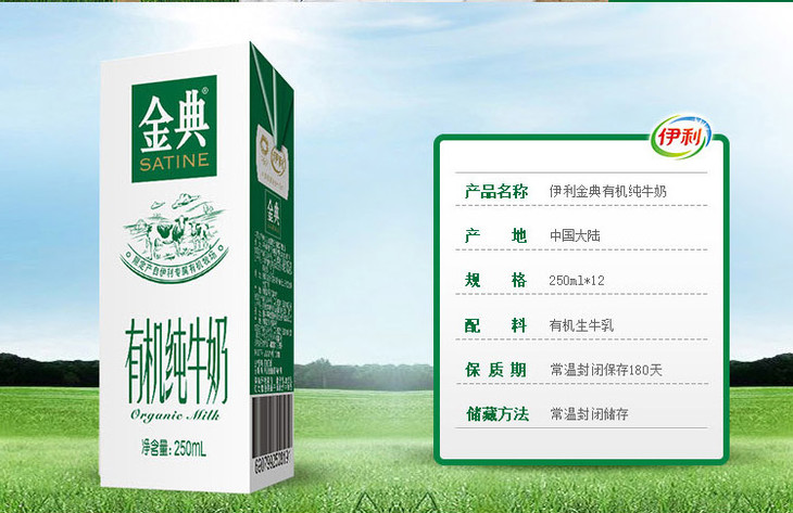 金典有机纯牛奶250ml*12盒/箱特价69