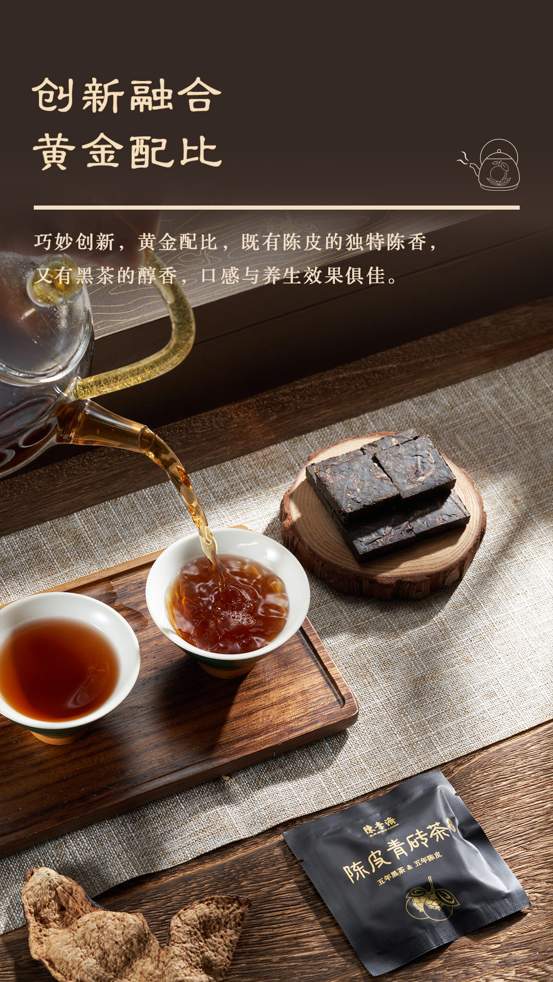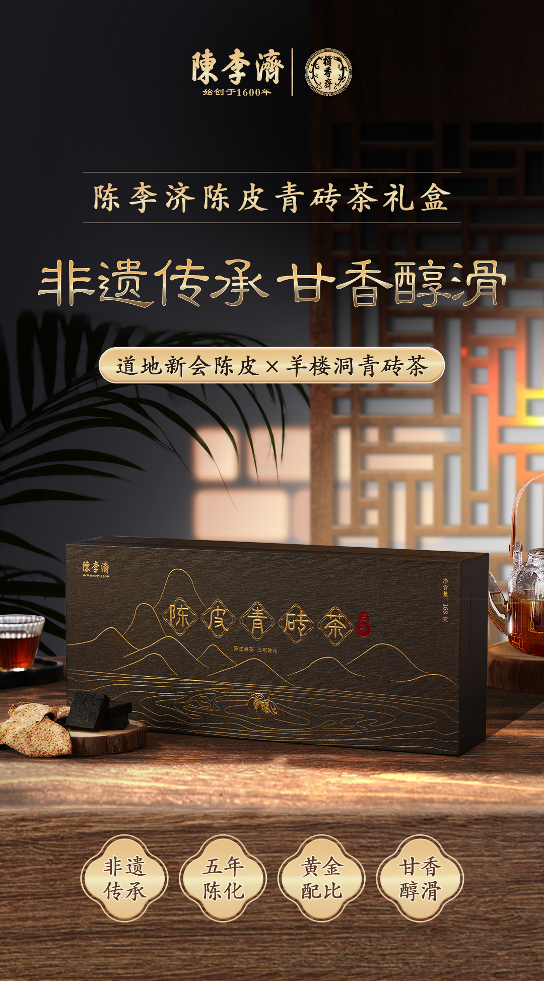 陈李济五年陈皮青砖茶礼盒 甘香醇滑送礼佳选 168g/盒