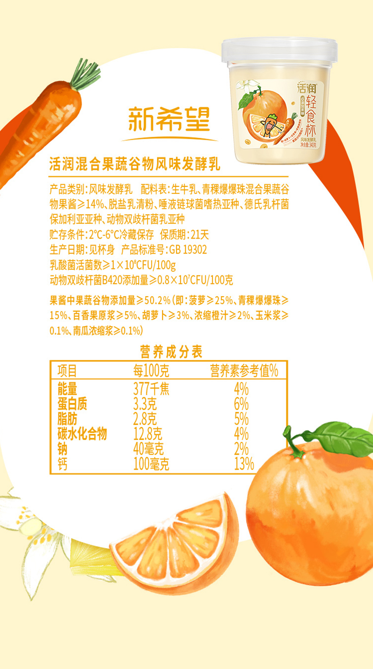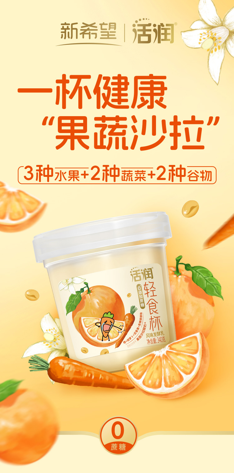 新希望活润混合果蔬风味发酵乳(胡萝卜橙)340g*5杯【快递冷链发货】